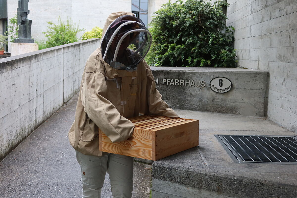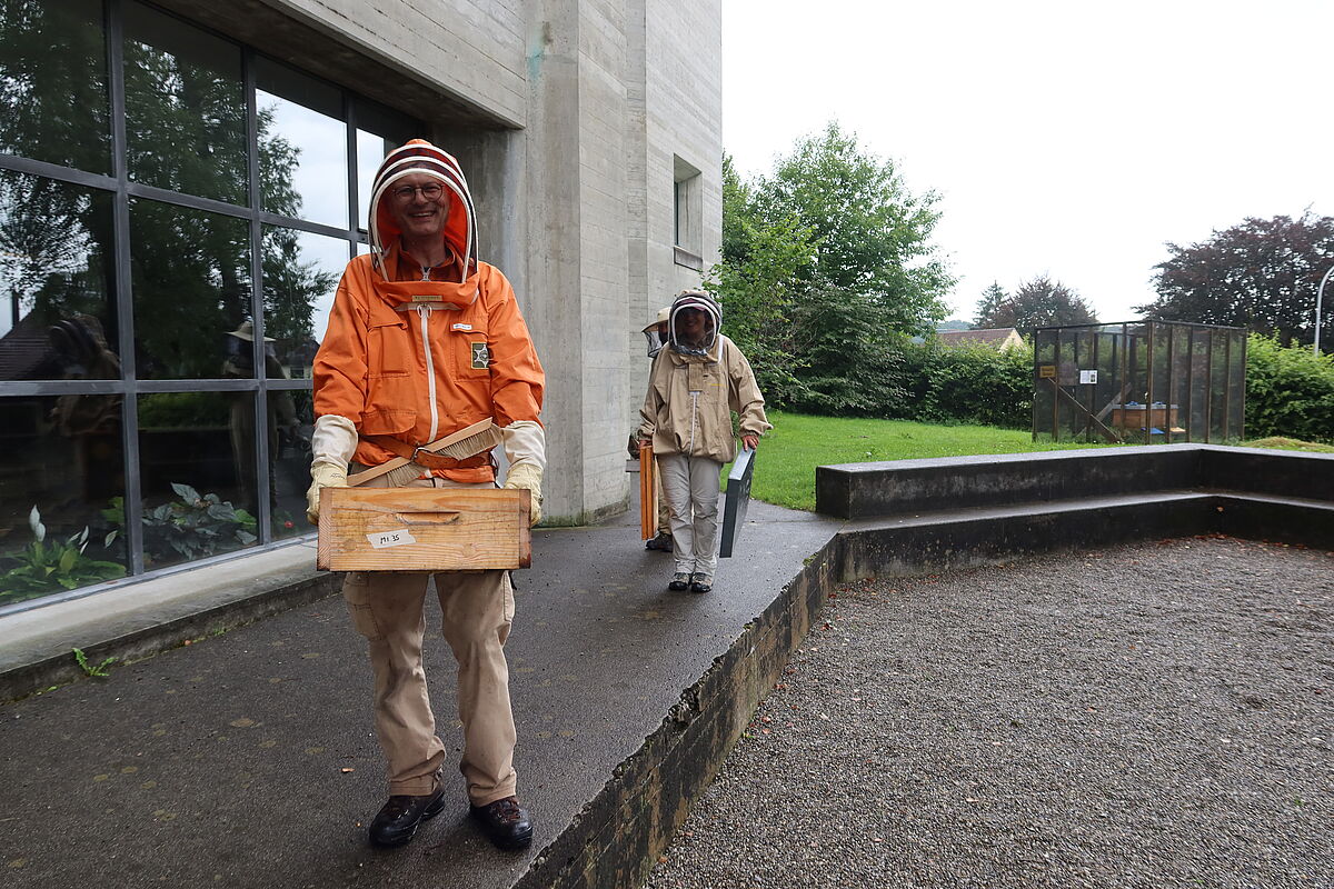 Die neuen Bienenvölker von Rolf Simmen sind im März 2025 zugezogen. Hinter einem nach oben offenen Gitter können die Bienen jederzeit besucht und bei ihrer grossartigen «Arbeit» beobachtet werden.