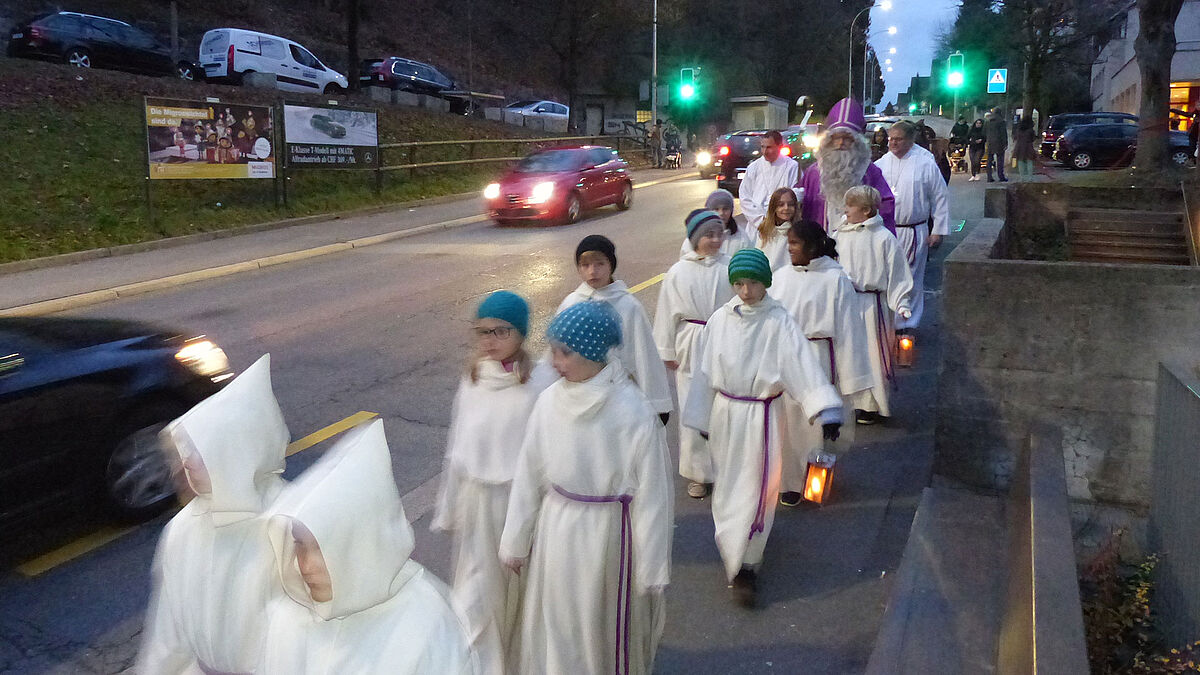 Der St. Karli-Samichlaus zieht durch die Strassen des Quartiers.