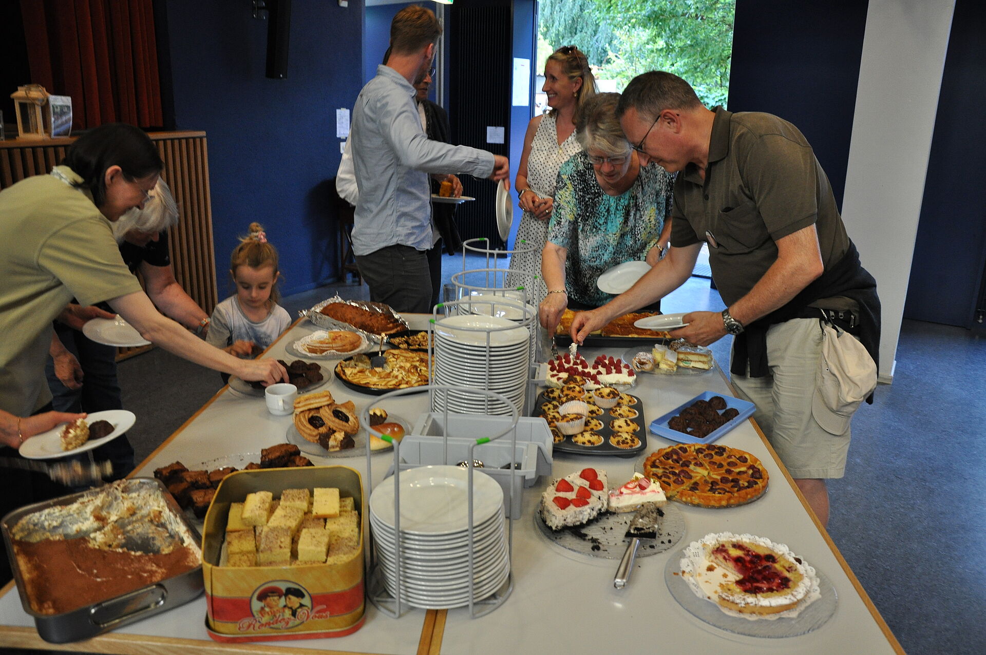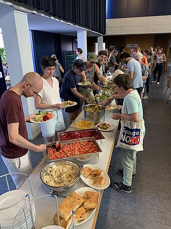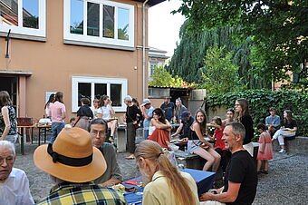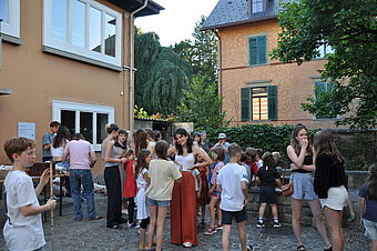 Am Samstag stand das gemeinsame Feiern uns Zusammensein im Mittelpunkt. Ein reichhaltiges Essen aus der Lagerküche von Jungwacht und Blauring St. Paul und das Paulaner:innen Dessertbuffet verwöhnte unsere Gaumen. Im Erinnerungsraum der JuBla konnten wir in die Vergangenheit eintauchen und den Kindern bot die JuBla mit einer Schnitzeljagt und Schoggibananen im Pfarrhausgarten ein tolles Rahmenprogramm. Der Pfarreirat und weitere Helfer:innen sorgten dafür, dass sich alle im festlich geschmückten Paulusheim und im Innenhof wohl fühlten und gemeinsam einen gemütlichen Sommerabend mit vielen Begegnungen erleben durften.