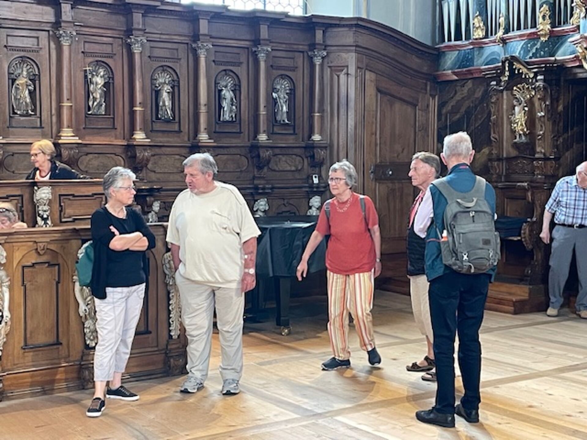 An unserem diesjährigen Tagesausflug nahmen 39 Personen teil. Er führte uns bei schönem Wetter zuerst über das Zürcher Oberland auf die Hulftegg, wo wir den obligatorischen Kaffeehalt einlegten. Anschliessend gings weiter nach Fischingen im Kanton Thurgau. Die Führung durch die wunderschöne Klosteranlage mit den prächtigen Räumlichkeiten und Sakralbauten war eindrucksvoll. Nach dem Pilgersegen durch einen Benediktinerpater durfen wir noch Klänge der grossen Orgel im oberen Chor geniessen. Nach kurzer Weiterfahrt nach Kirchberg SG stärkten wir uns mit einem feinen Mittagessen und einem Glas Wein für die schöne Heimreise über den Ricken. Herzlichen Dank an Yvonne für die tadellose Organisation.