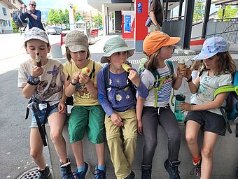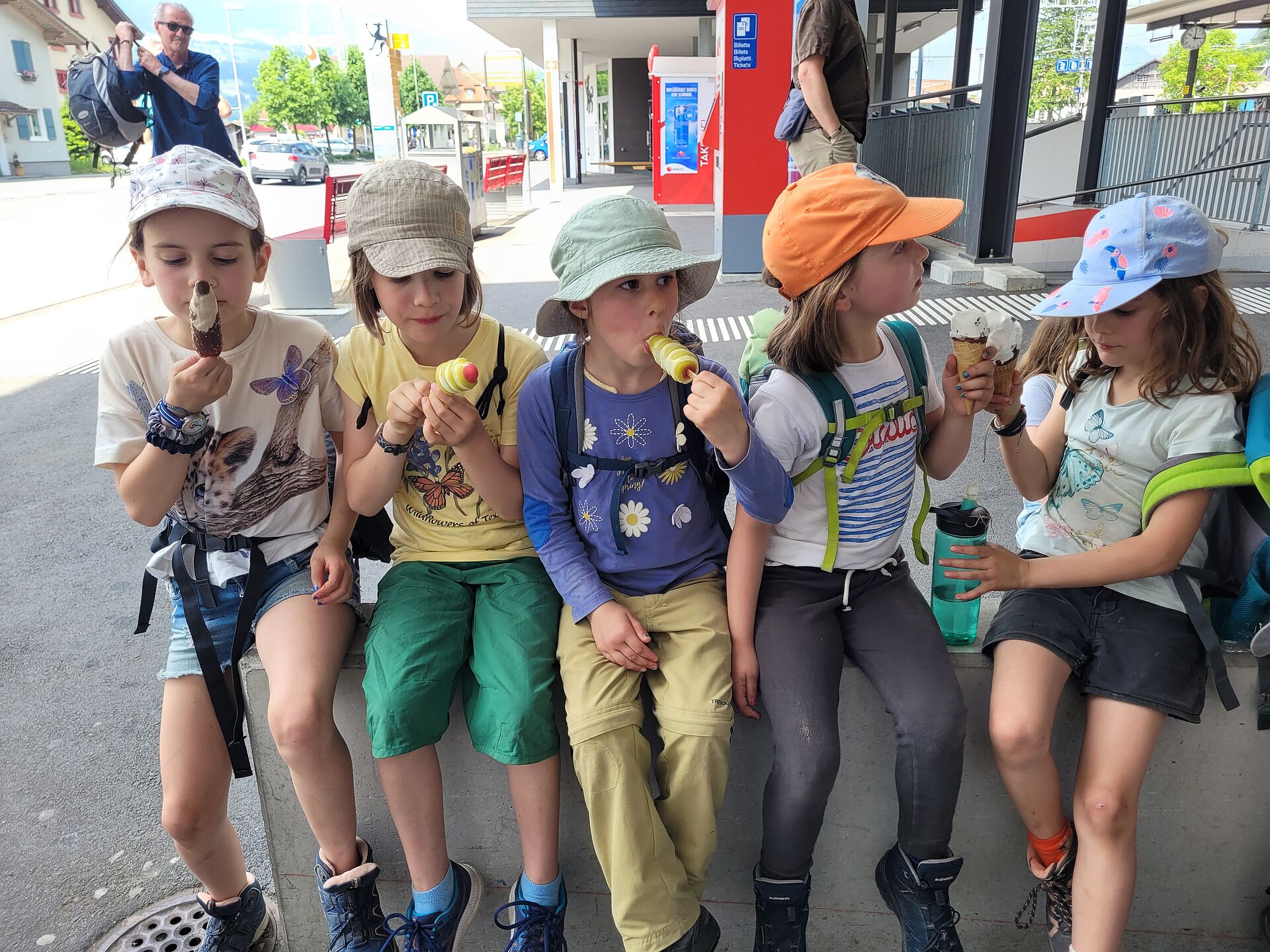 Bevor der Zug losfuhr, war gerade noch Zeit, um eine Glace zu kaufen. Mit vanille-verschmierten Mündern, strahlenden Augen und einem Erlebnis reicher, kamen wir glücklich in Luzern an.