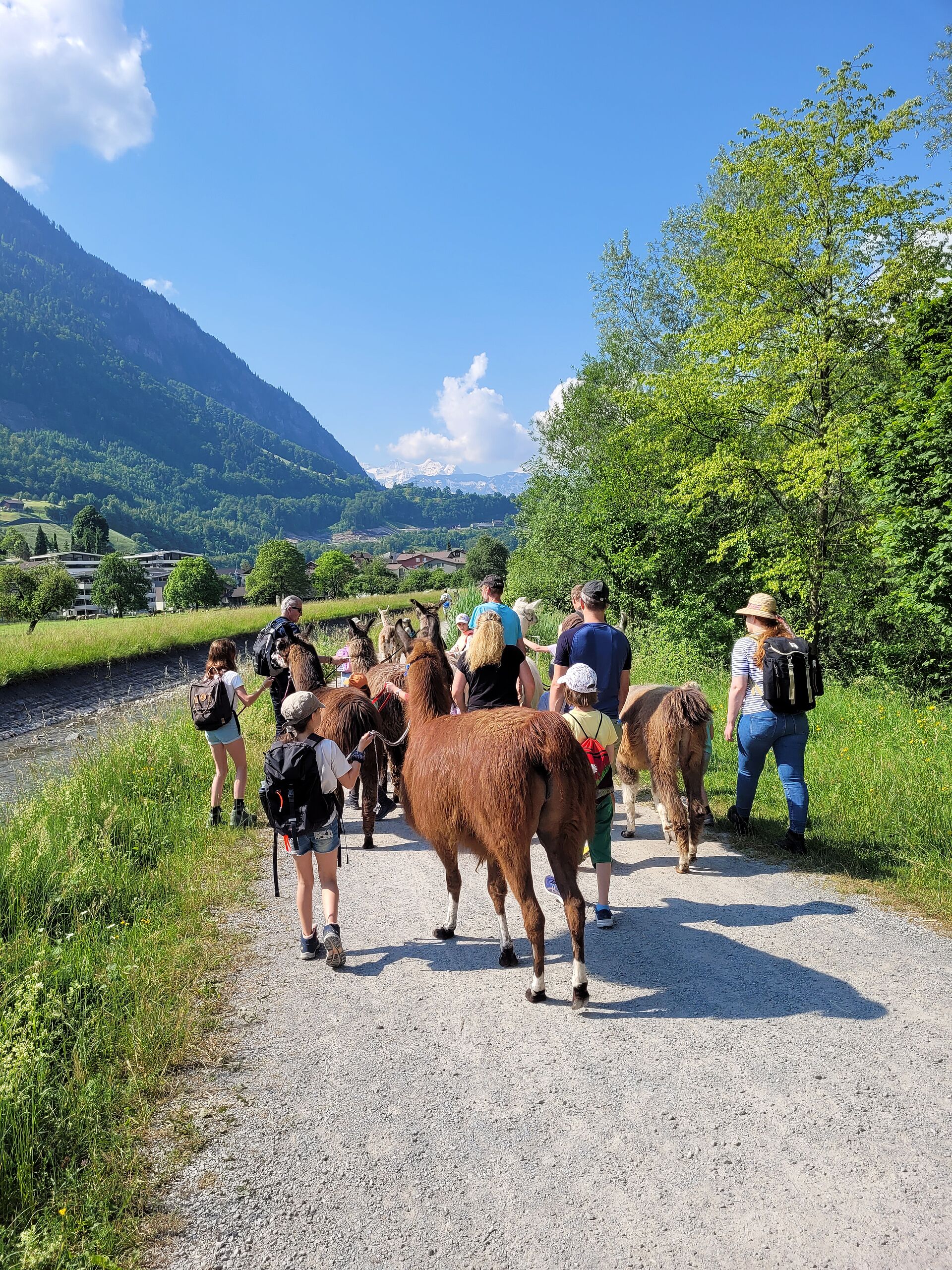 Nach Spiel und Spass rund um die Hütte machten wir uns auf den Rückweg. Wenn wir den Zug rechtzeitig erreichen wollten, mussten wir auch eine eventuelle Pinkelpause der Lamas einberechnen. Der Abschied von den Lamas fiel nicht leicht, am liebsten hätten die Kinder eins mit nach Hause genommen… Falls Sie eines im Quartier St. Paul sichten, bringen Sie es bitte nach Giswil zurück.