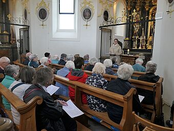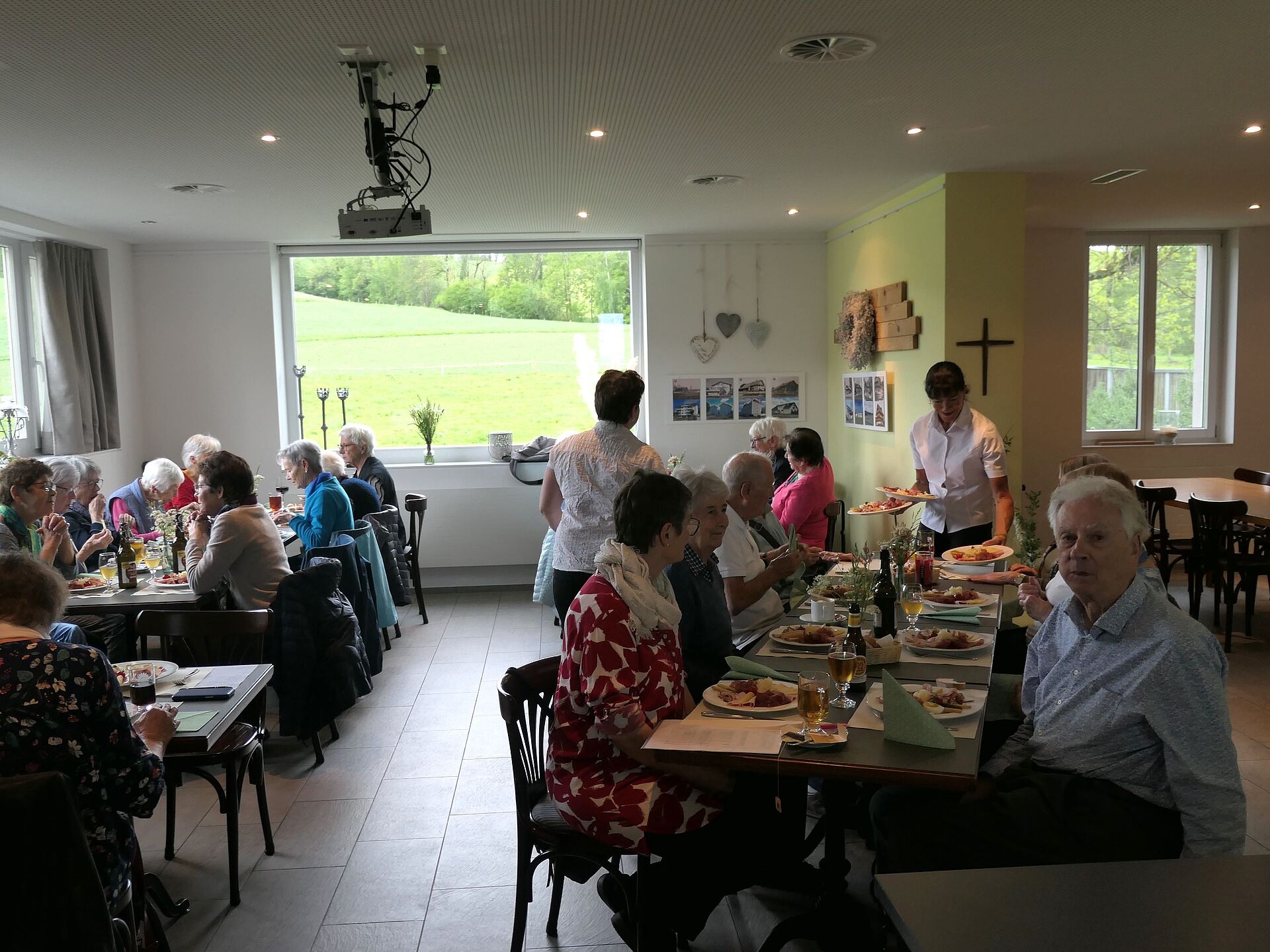 Seniorinnen und Senioren der Pfarreien St. Karl und St.Josef fuhren mit dem Car durch Wind und Regen durchs Luzerner Hinterland zur St. Ottilienkapelle bei Buttisholz. Wir hatten Wetterglück. «Maria, breite deinen Mantel aus, mach Schirm und Schutz daraus… so sangen wir und wir blieben geschützt vor Regenschauer. Claudia Jaun machte in der Andacht einen Vergleich von Maria’s und Ottilia’s Leben, beides waren starke Frauen. Alle erhielten ein symbolisches Schirmchen und einen Frauenmänteliteebeutel. Nach der Andacht sassen wir gemütlich in der Pilgerstube, bei Zvieriplättli und einem Glas Wein, einer Tasse Tee oder einem Apfelmost. Die Stimmung war gut und die Bedienung sehr freundlich.