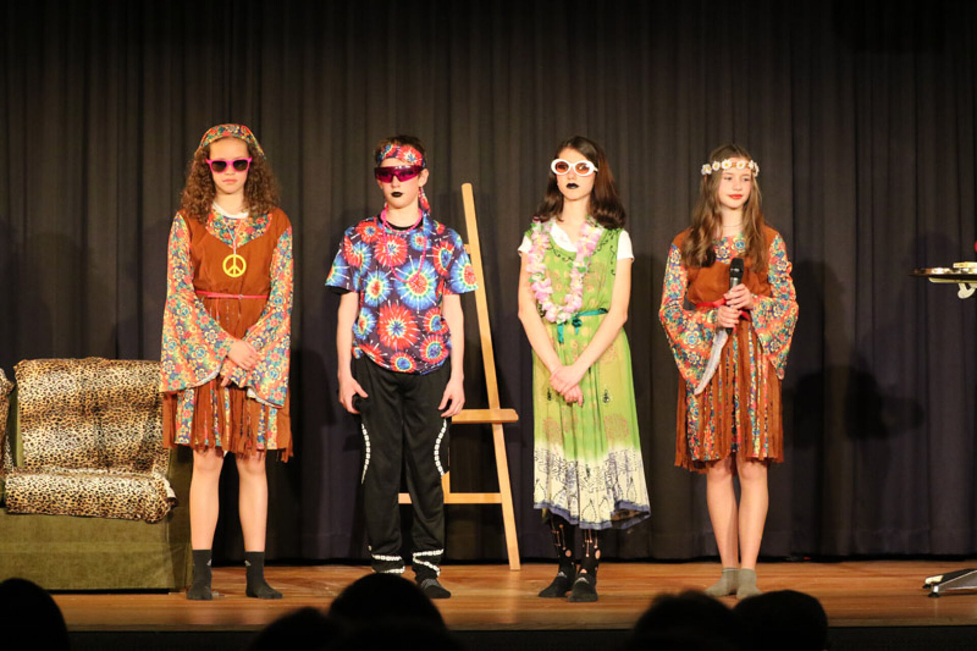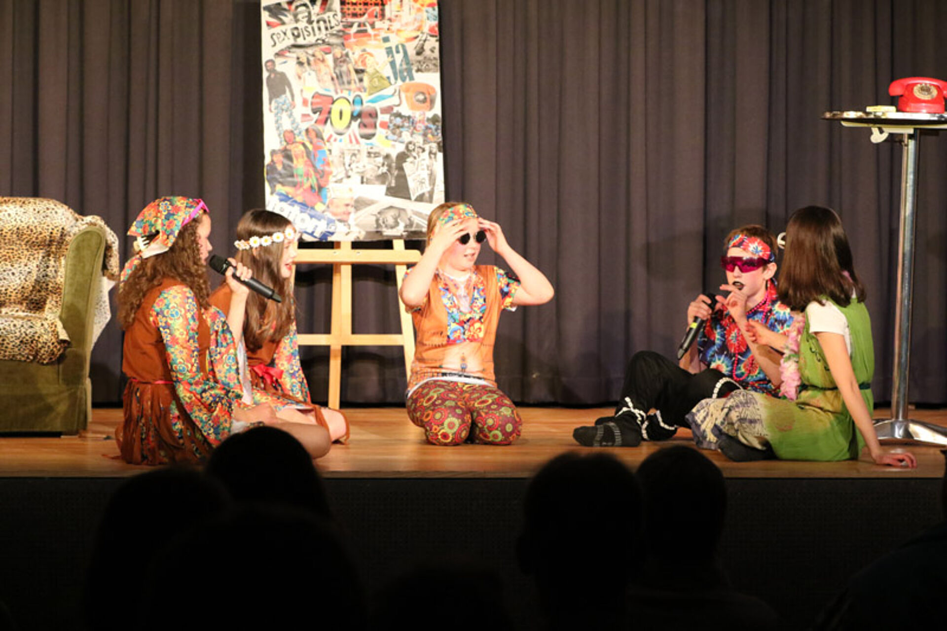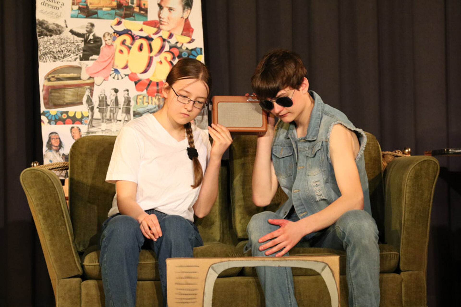 Die Theatergruppe des Kinder-/Jugendchors reiste am 8. und 9. April durch die wilden 60er, farbigen 70er, coolen 80er und die rappenden 90er Jahre. Dabei gerieten sie in den Sog der Jugendbewegungen. Sie ärgerten als Halbstarke die Spiesser, demonstrierten als Hippies gegen den Vietnamkrieg, provozierten als Punks die Queen und wurden als Skater auf dem Europaplatz verhaftet.