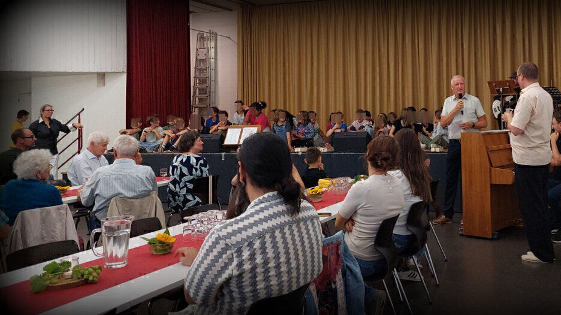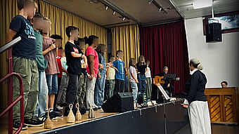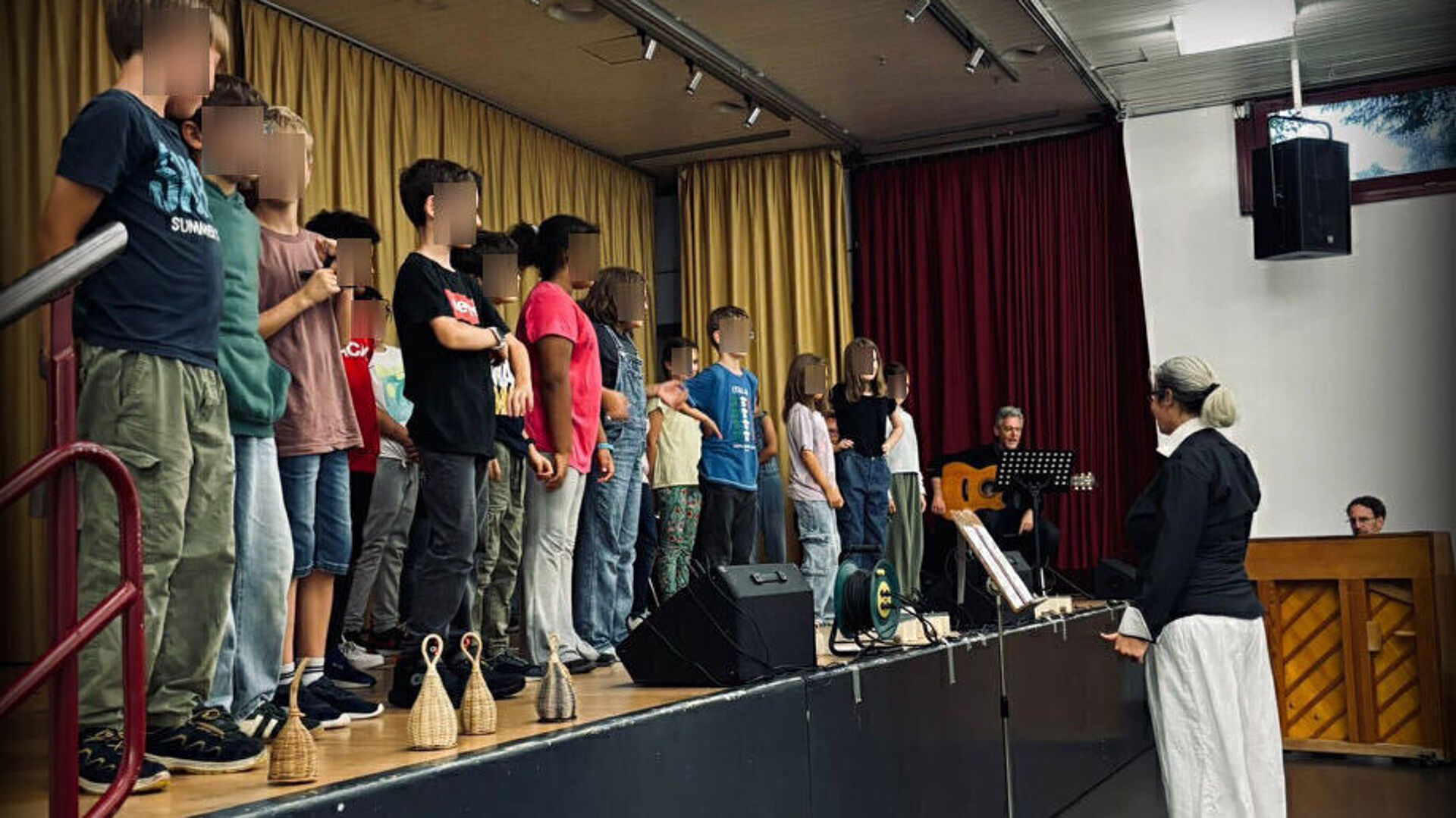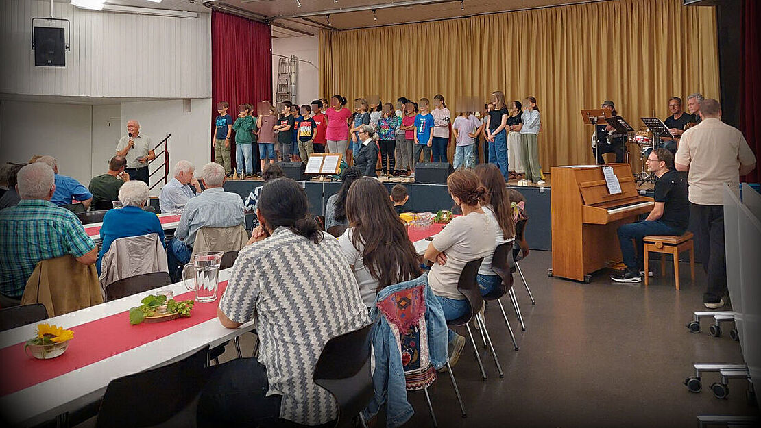 Der 35-köpfige Kinderchor sorgte für eine freundliche und fröhliche Atmosphäre, während eine Band zusätzlich für musikalische Unterhaltung sorgte.