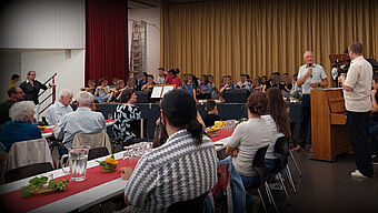 Trotz des schlechten Wetters war die Veranstaltung “Begegnung am Wasser” ein voller Erfolg. Statt auf der Kirchenterasse fand der Anlass im Pfarreiheim statt und wurde sehr gut besucht.