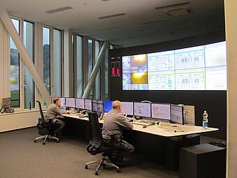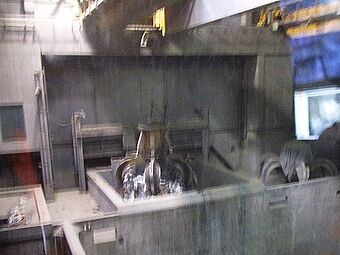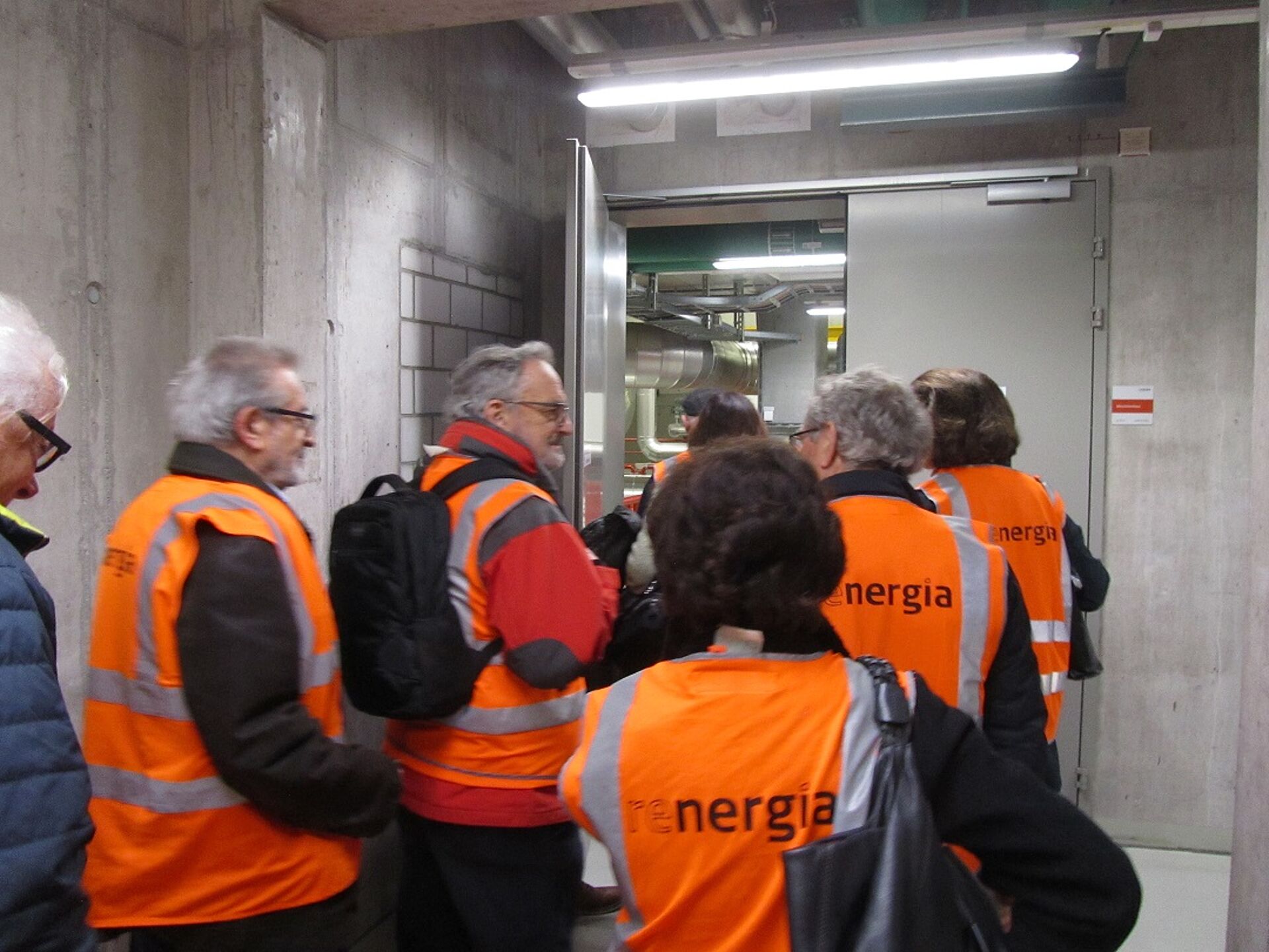 Auf dem Rundgang folgten die zwei Gruppen dem Weg des Abfalls ab der Anlieferungshalle. Anschliessend laden riesige Greifarme den Kehricht aus dem Bunker in den Trichter. Über ein schräges Förderband gelangt er in den Verbrennungsraum. Durch ein kleines Fenster konnte man hineinblicken und die rund 1000° Hitze spüren. An der nächsten Station sammelt sich die Schlacke aus Asche und weiteren Rückständen. Von einer Drittfirma werden die Metalle für das Recycling aussortiert, der Rest (ca. 10% der ursprünglichen Menge) wird deponiert. Im Maschinenhaus wurden die grossen Turbinen bestaunt, welche vom Dampf aus dem Heizraum angetrieben werden. Aus der Betriebszentrale oben im Gebäude wird die ganze Anlage überwacht und gesteuert. Hier trafen wir erstmals einige Mitarbeitende.