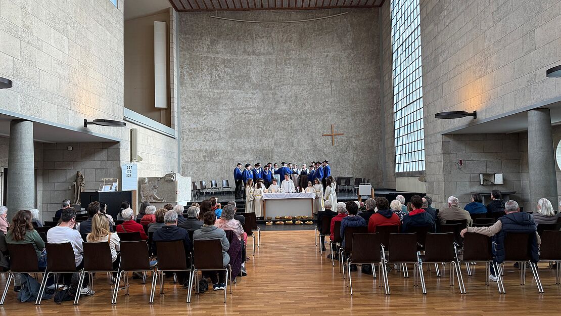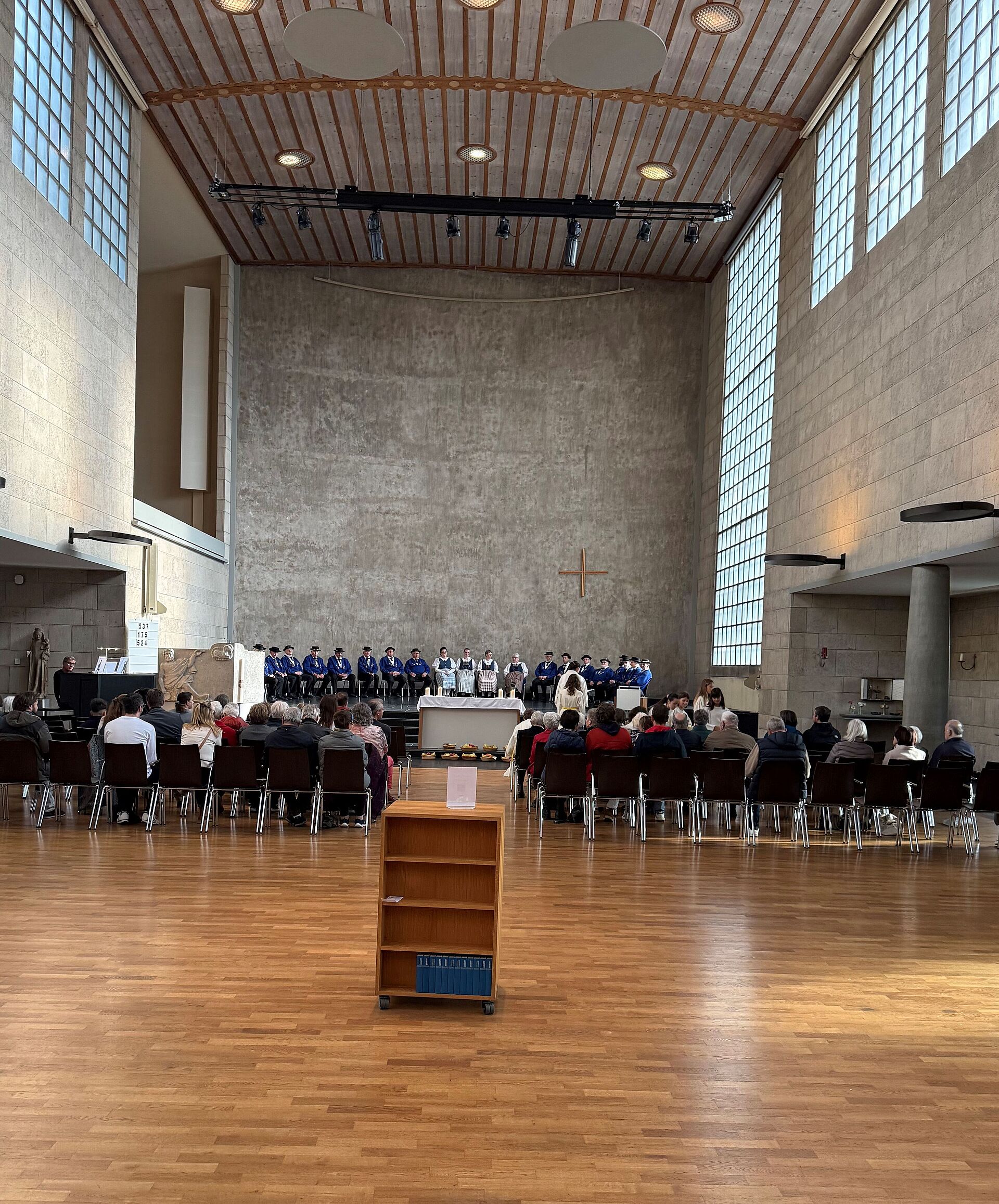 Nach einer der fröhlichen, farbigen Chilbi unter dem Motto «vielstimmig» am Samstag im St. Karl feierten wir am Sonntag Chilbigottesdienst im MaiHof – Pfarrei St. Josef. Auch im MaiHof war es vielstimmig. Nach dem gemeinsamen Start auf dem Kirchenplatz feierten die Kinder mit Zsuzsanna Szabo im kleinen Saal. Der Gottesdienst für die Erwachsenen wurde durch die Stimmen der Bürgerturner Jodler und der Minis, die den Lektor:innendienst übernahmen, bereichert. Der anschliessende Apéro mit Most vom Sedel bot die Gelegenheit zum Austausch.