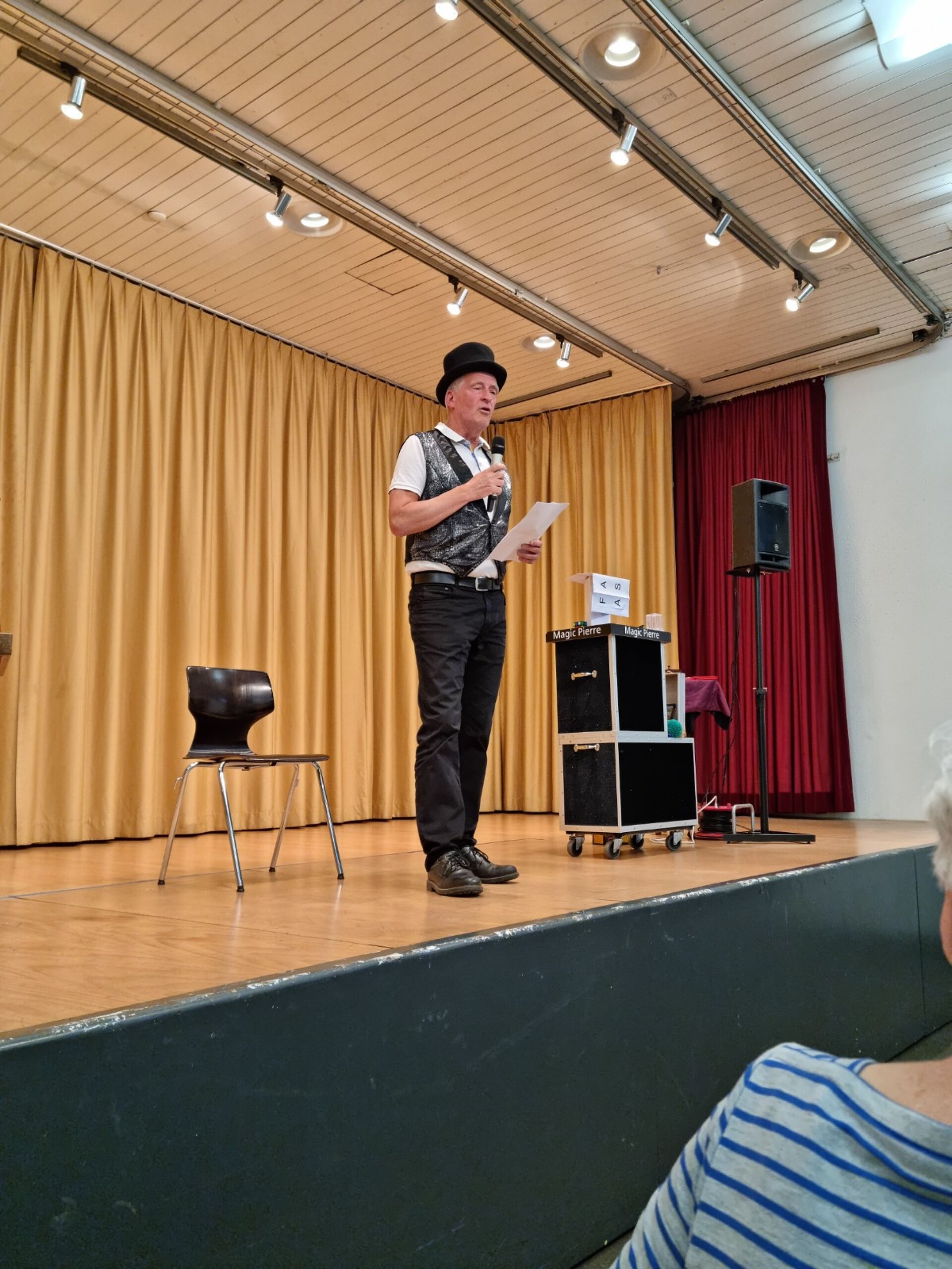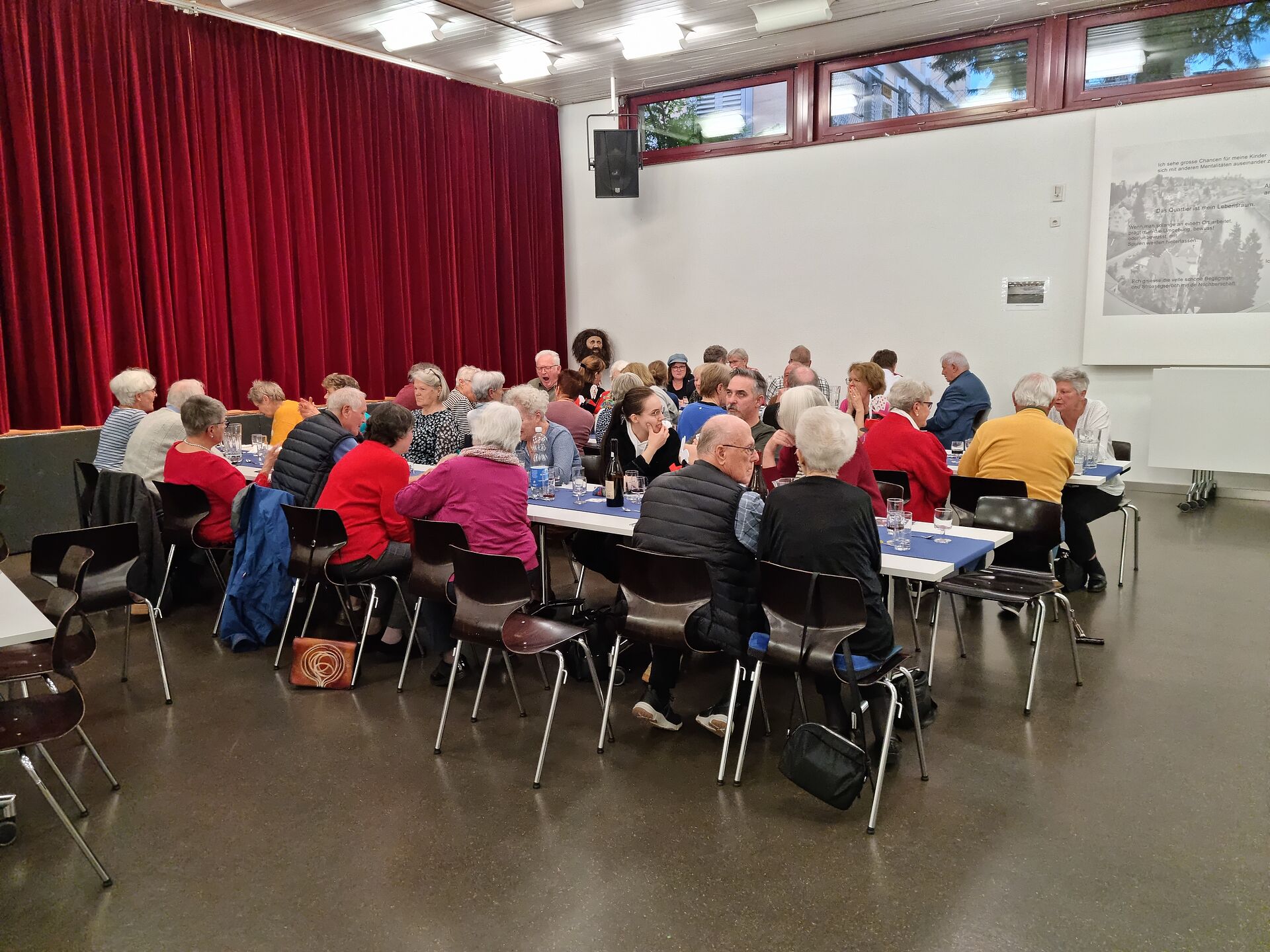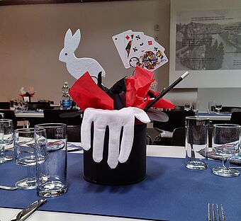 Nach einem Apéro im Freien, mit beschwingter Musik von Marcel Keckeis, wurde von den Mitarbeitenden im wunderbar dekorierten Saal ein Nachtessen serviert. Dazwischen begeisterte Magic-Pierre die Anwesenden mit sagenhaftem Zauber. Das reichhaltige Dessert-Buffet rundete den Abend ab.