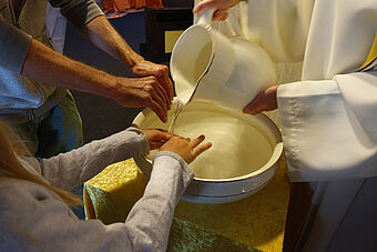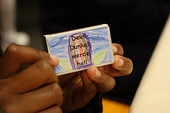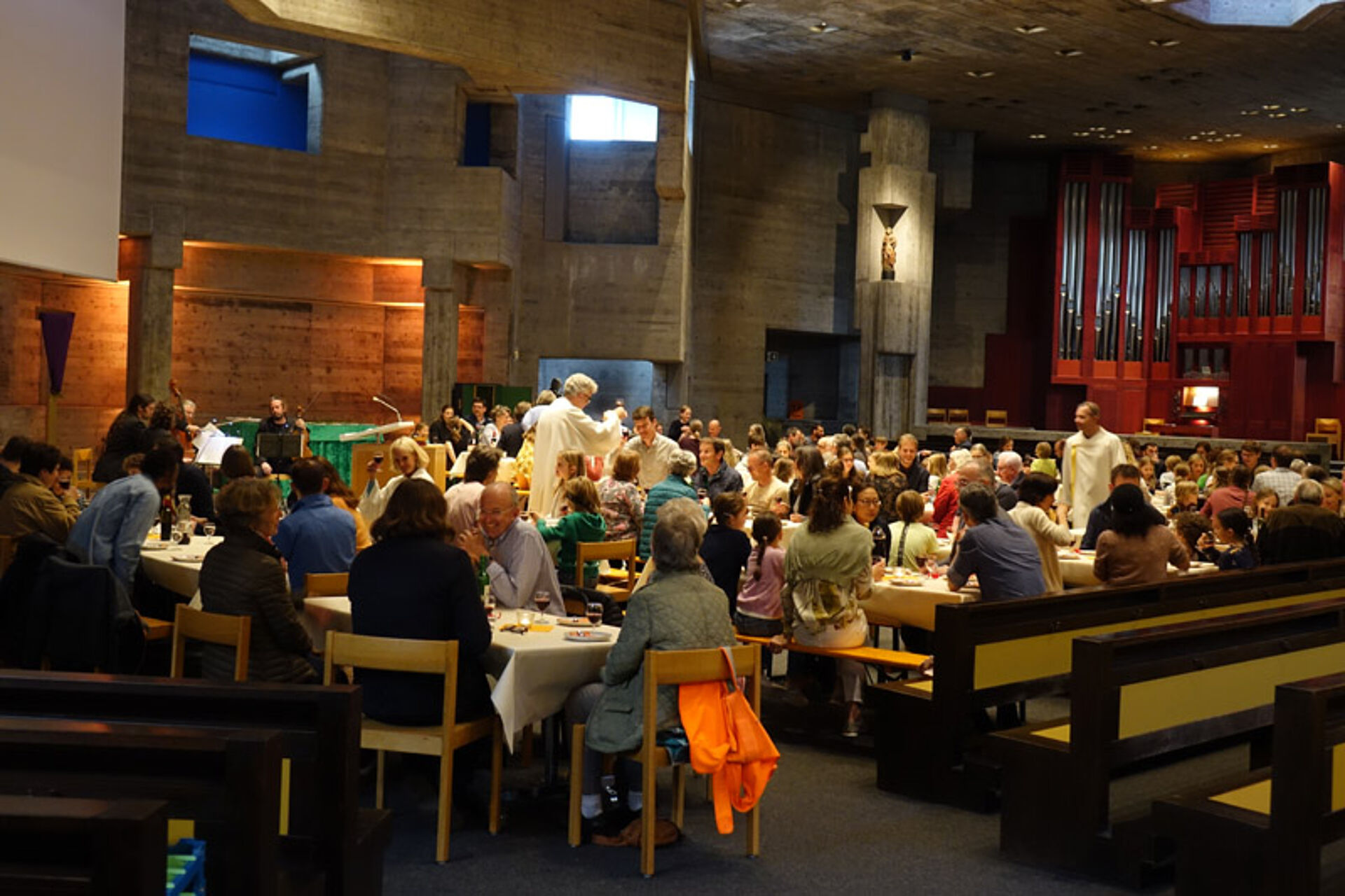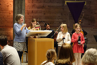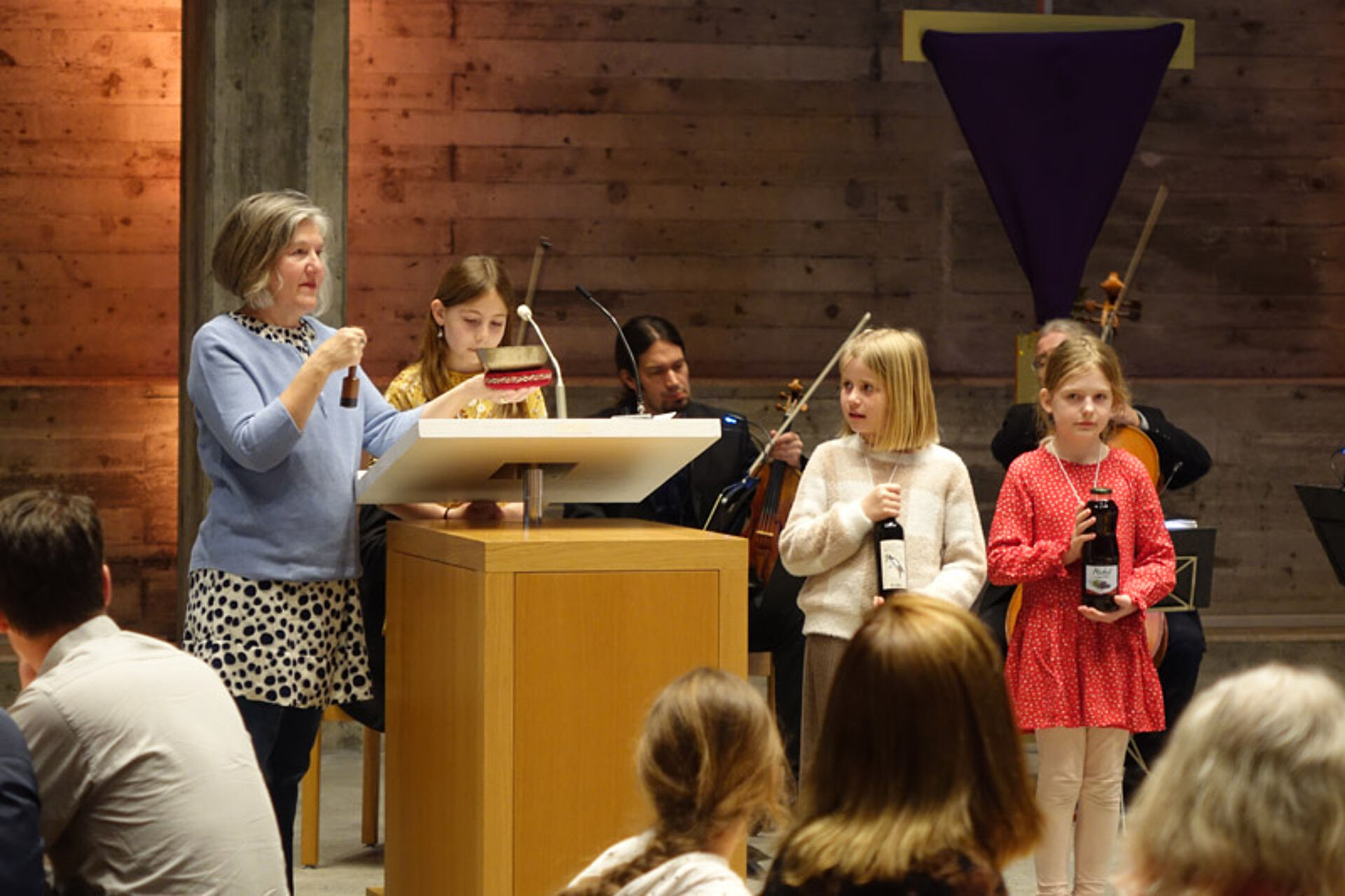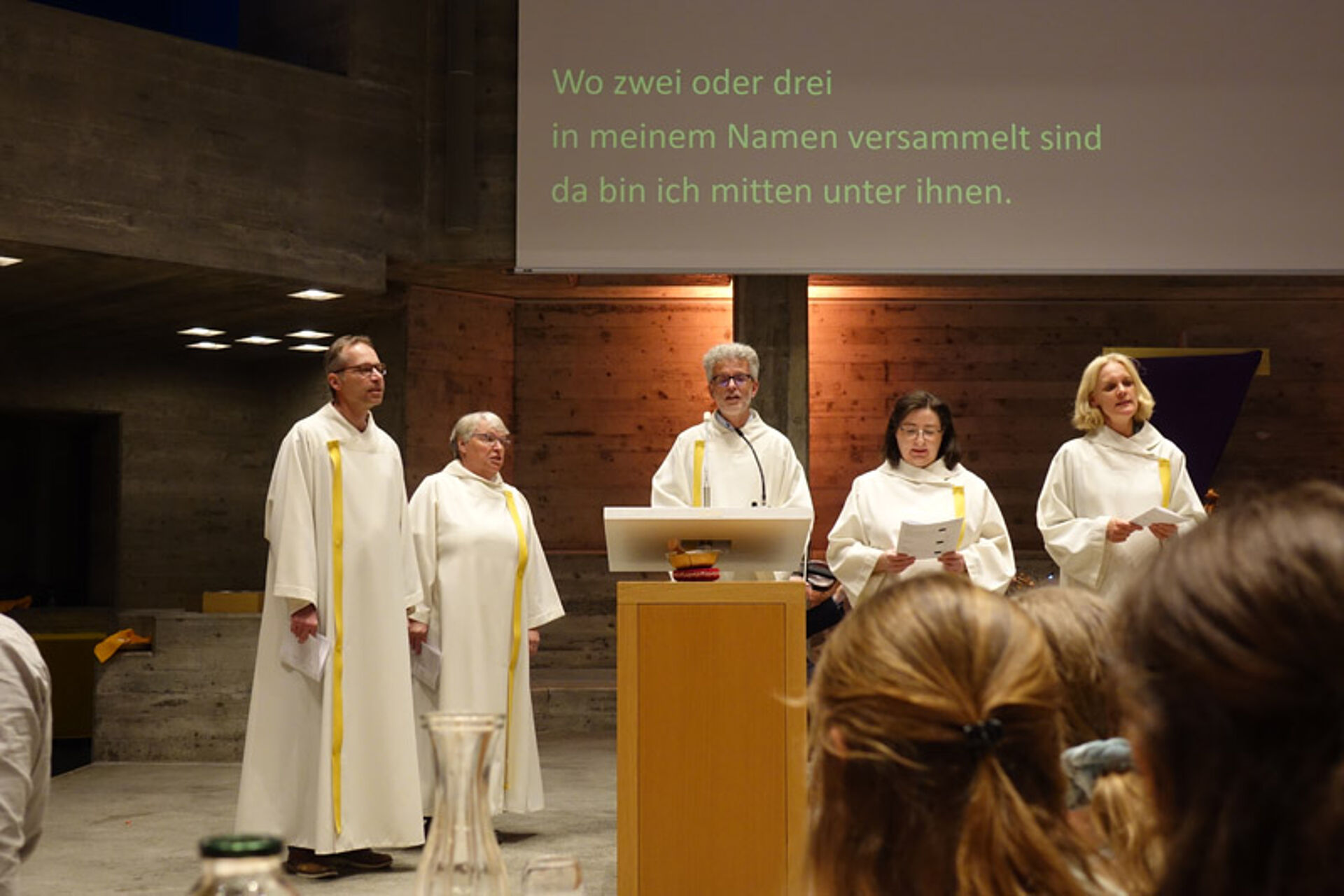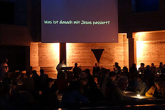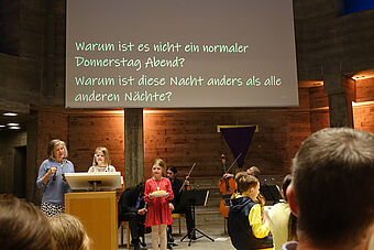 In der Kirche wird es dunkel. Schüler stellen die Szene der Verhaftung Jesu dar.