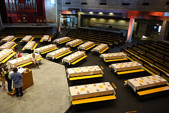 Mehr als 20 festlich gedeckte Tische stehen für die Besuchenden bereit.