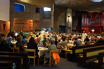 Schweigend verlassen die Besuchenden den dunklen Kirchenraum und begeben sich auf den Heimweg - dem Karfreitag entgegen.