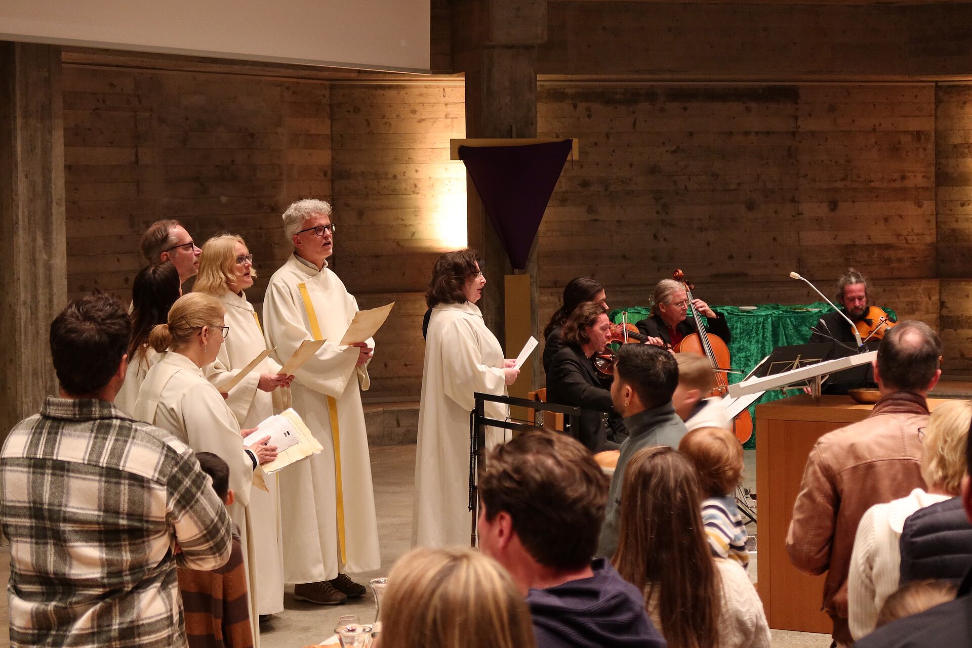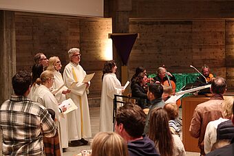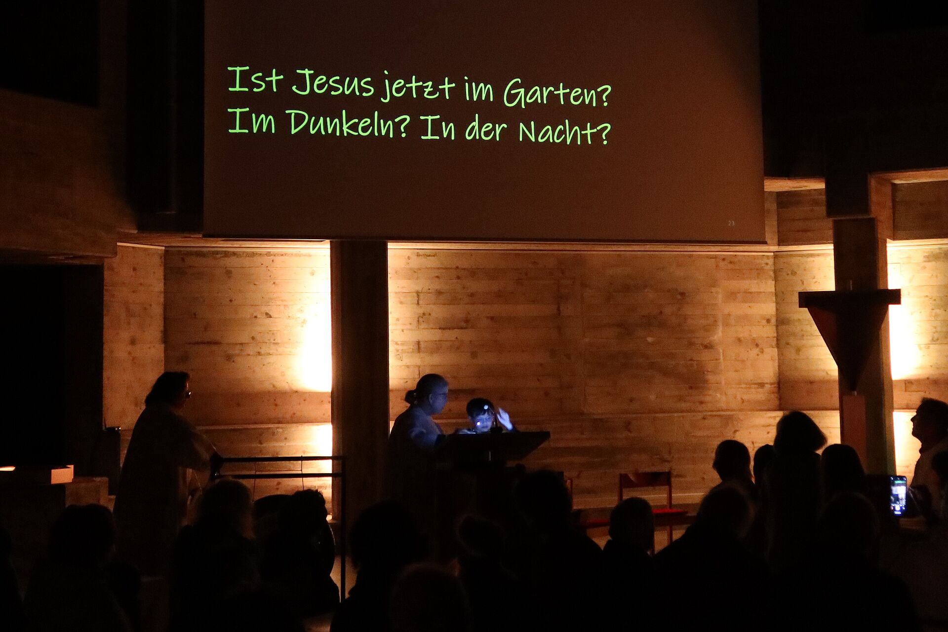 Schweigend verlassen die Besuchenden den dunklen Kirchenraum und begeben sich auf den Heimweg - dem Karfreitag entgegen.
