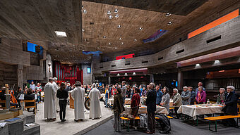 Schweigend verlassen die vielen Besuchenden den dunklen Kirchenraum und begeben sich auf den Heimweg - dem Karfreitag entgegen.