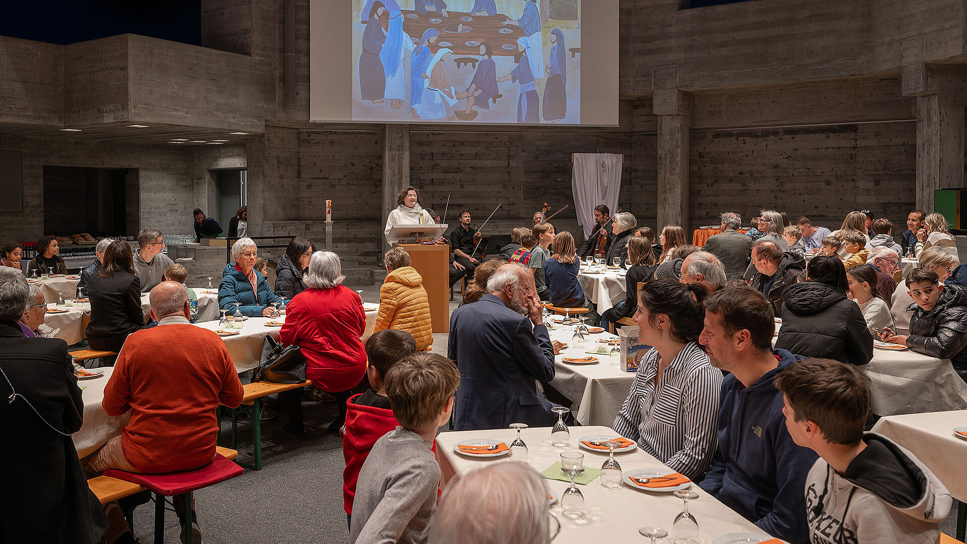 Beim Eingang werden die Hände gewaschen. Dies in Anlehnung an die Fusswaschung durch Jesus. Danach kann das Pessachfest beginnen, so wie dies Jesus mit seinen Gästen auch feierte. Mit Wein, Traubensaft, Bitterkräutern, dem Charoset Mus und Brot wird diese spezielle Nacht gefeiert. Begleitet von passender Live-Musik durch das Spring String Quartett.