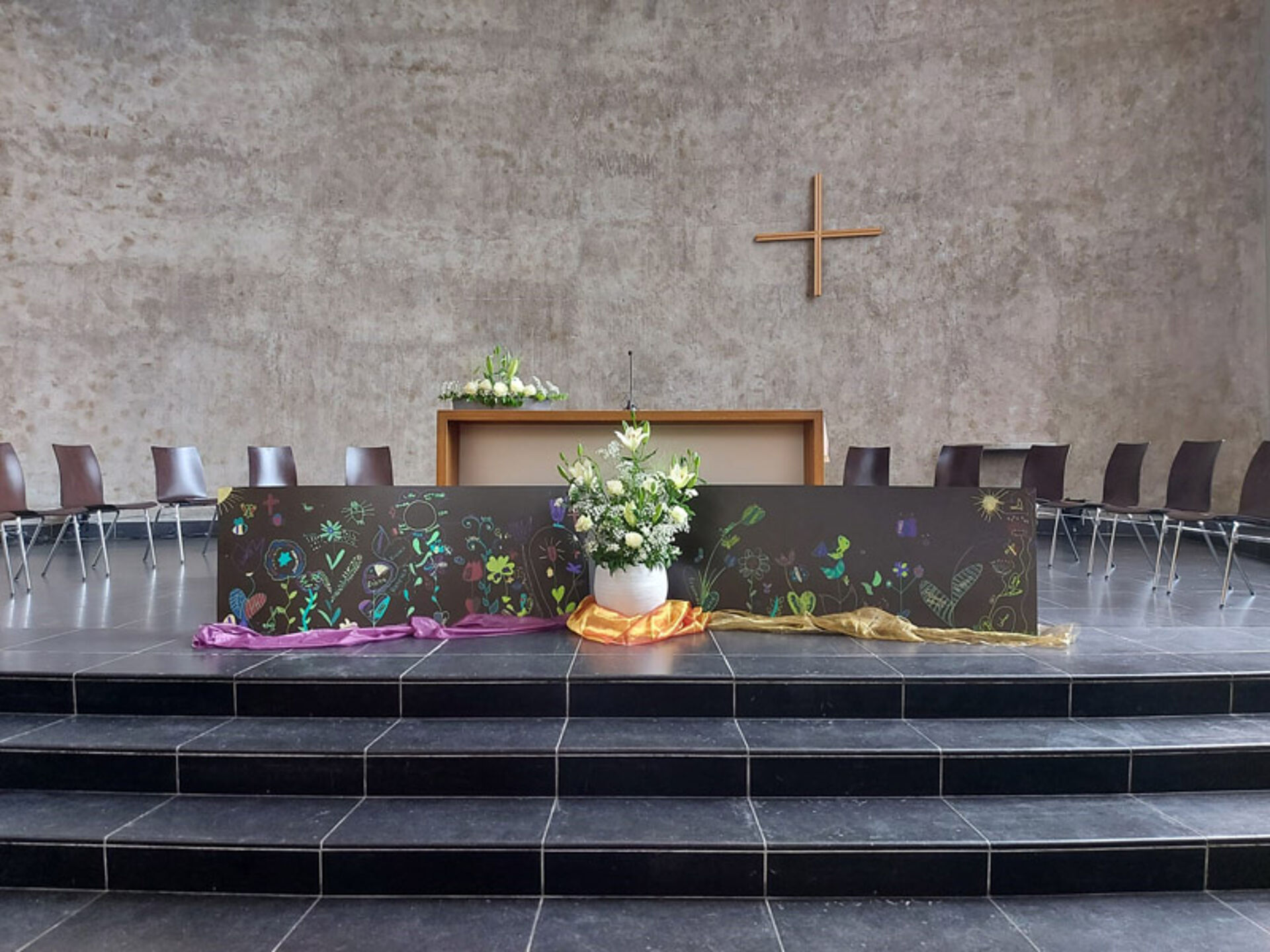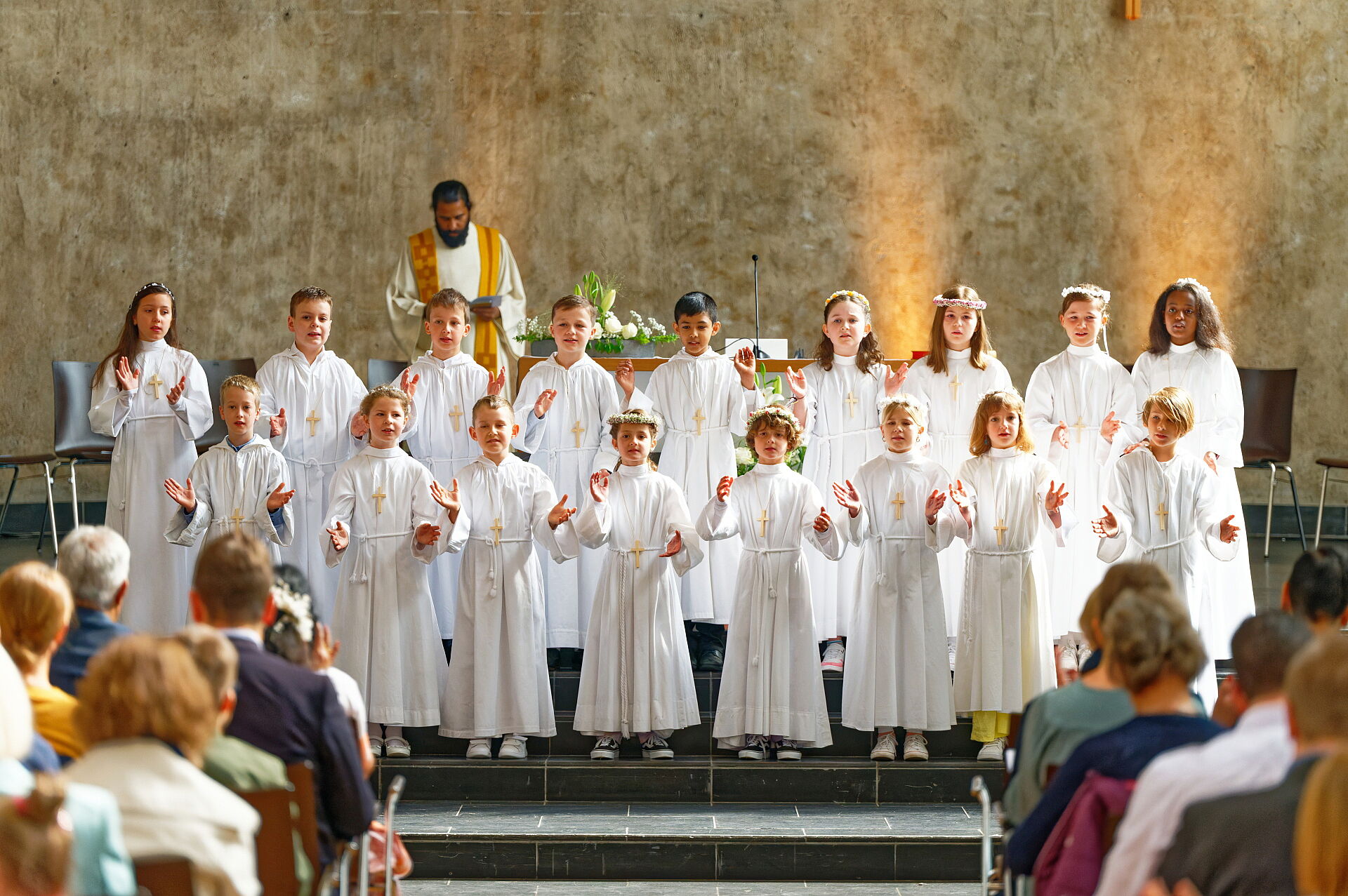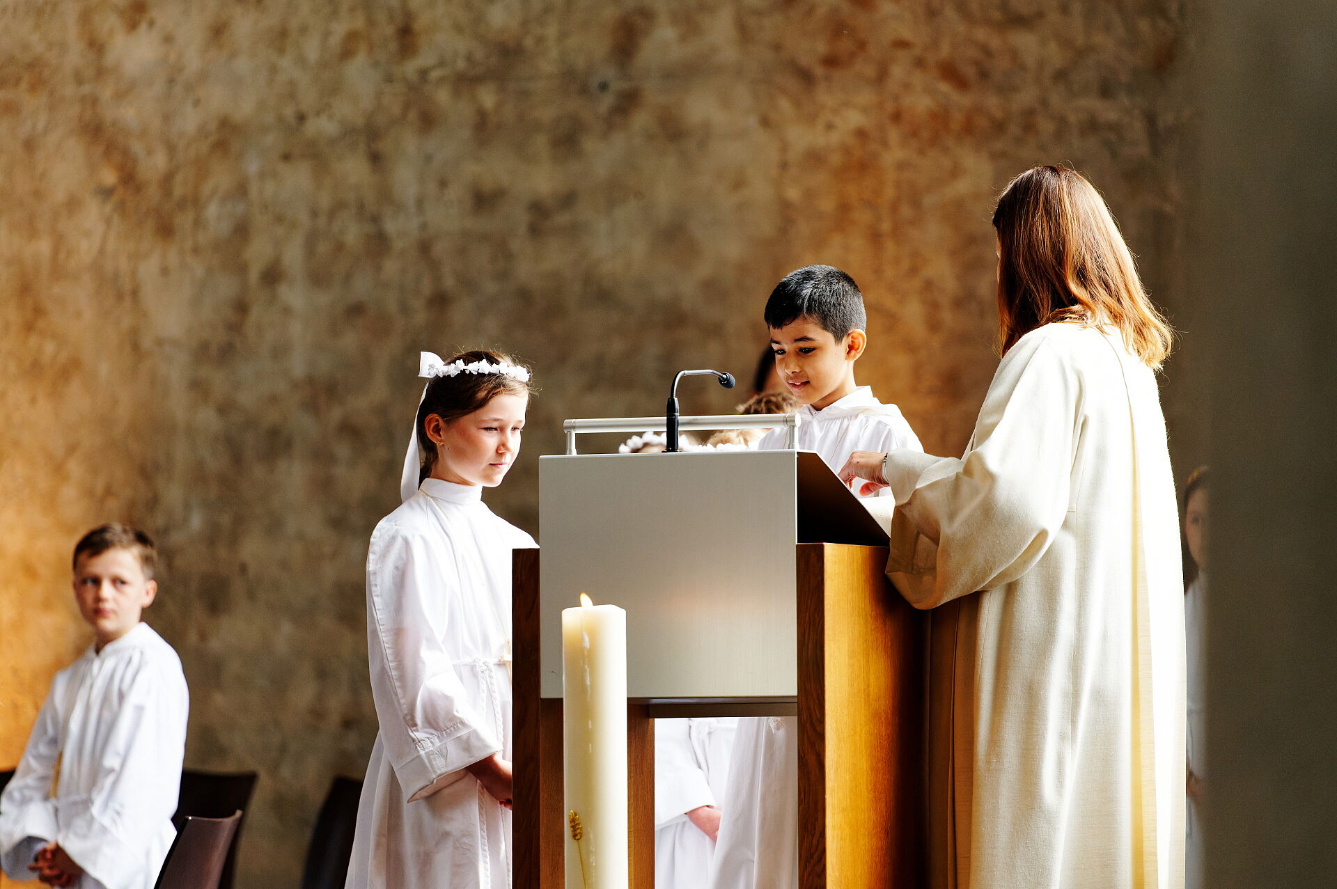 Wir wünschen unseren Erstkommunionkindern, dass ihr Herz immer mehr für Jesus brennt, dass sie die Gemeinschaft, die sie auf dem Erstkommunionweg erlebt haben, immer wieder spüren. Jesus lädt uns immer wieder ein an seinem Tisch und geht mit uns auf unserem Weg.