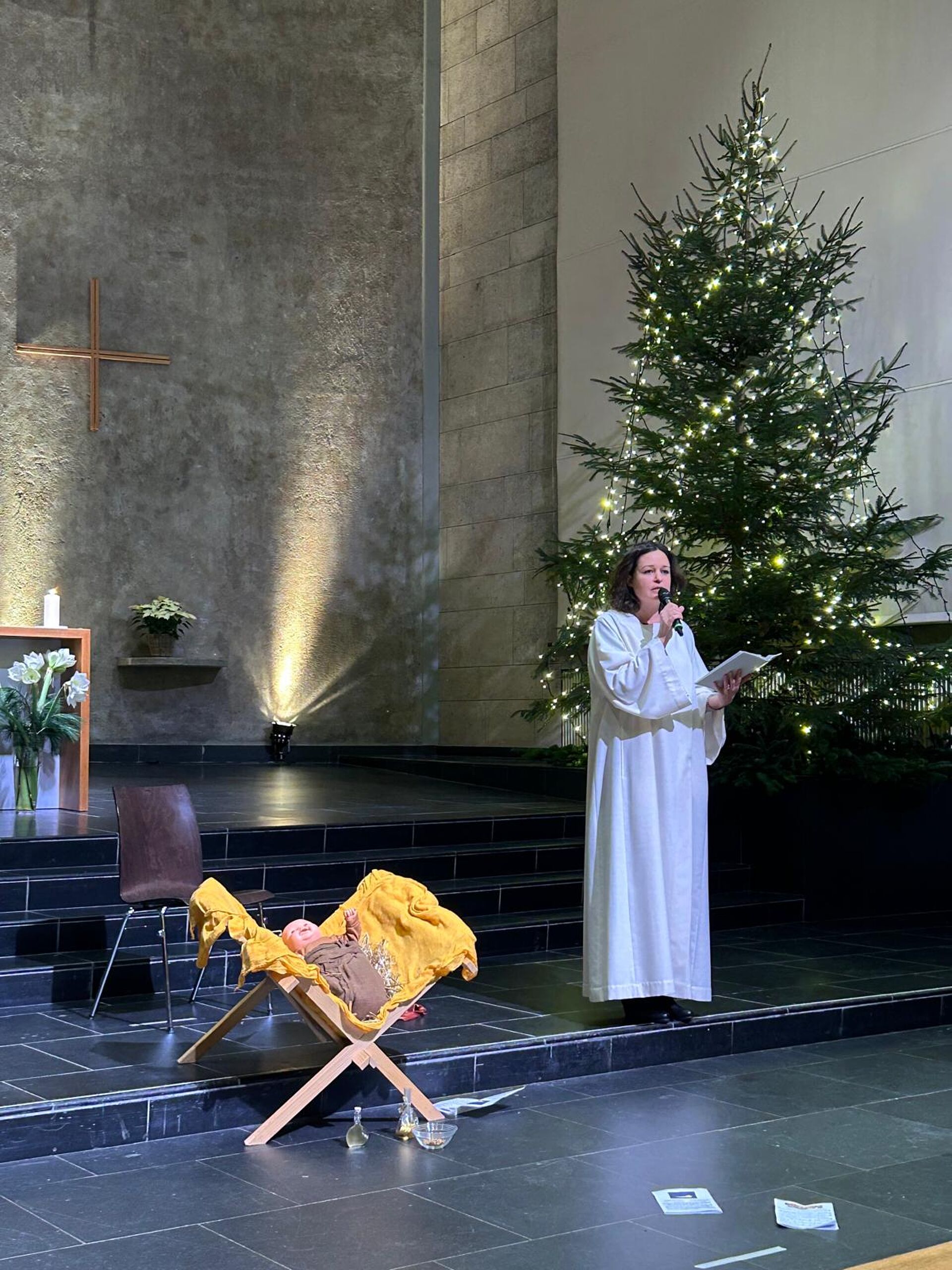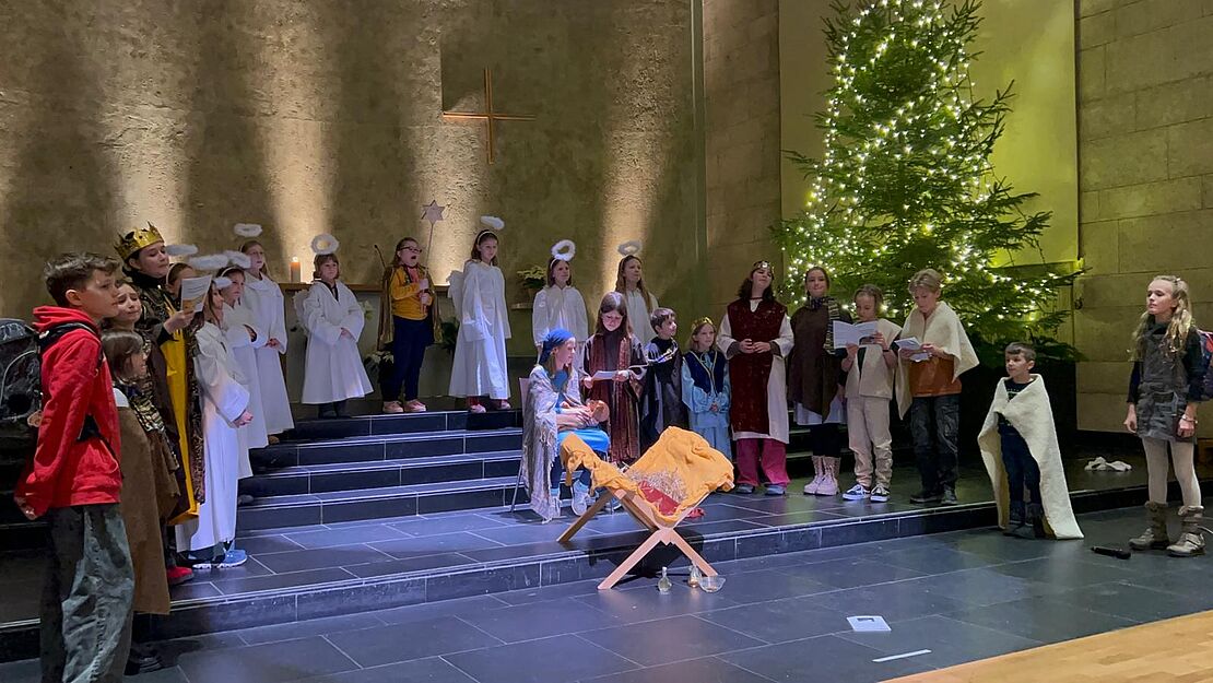 Ein besonderes Highlight war das Krippenspiel, an dem 24 Kinder aus den 1. bis 7. Klassen mitwirkten. Die jungen Darsteller:innen hatten fleissig geübt und beeindruckten mit ihrer Hingabe und ihrem Talent. Mit ihrer Predigt führte uns Mirjam Furrer näher an das Weihnachtswunder heran und liess uns die Bedeutung des Festes neu entdecken. Lorenz Ganz sorgte mit seiner wunderbaren Musik für eine festliche und besinnliche Atmosphäre.