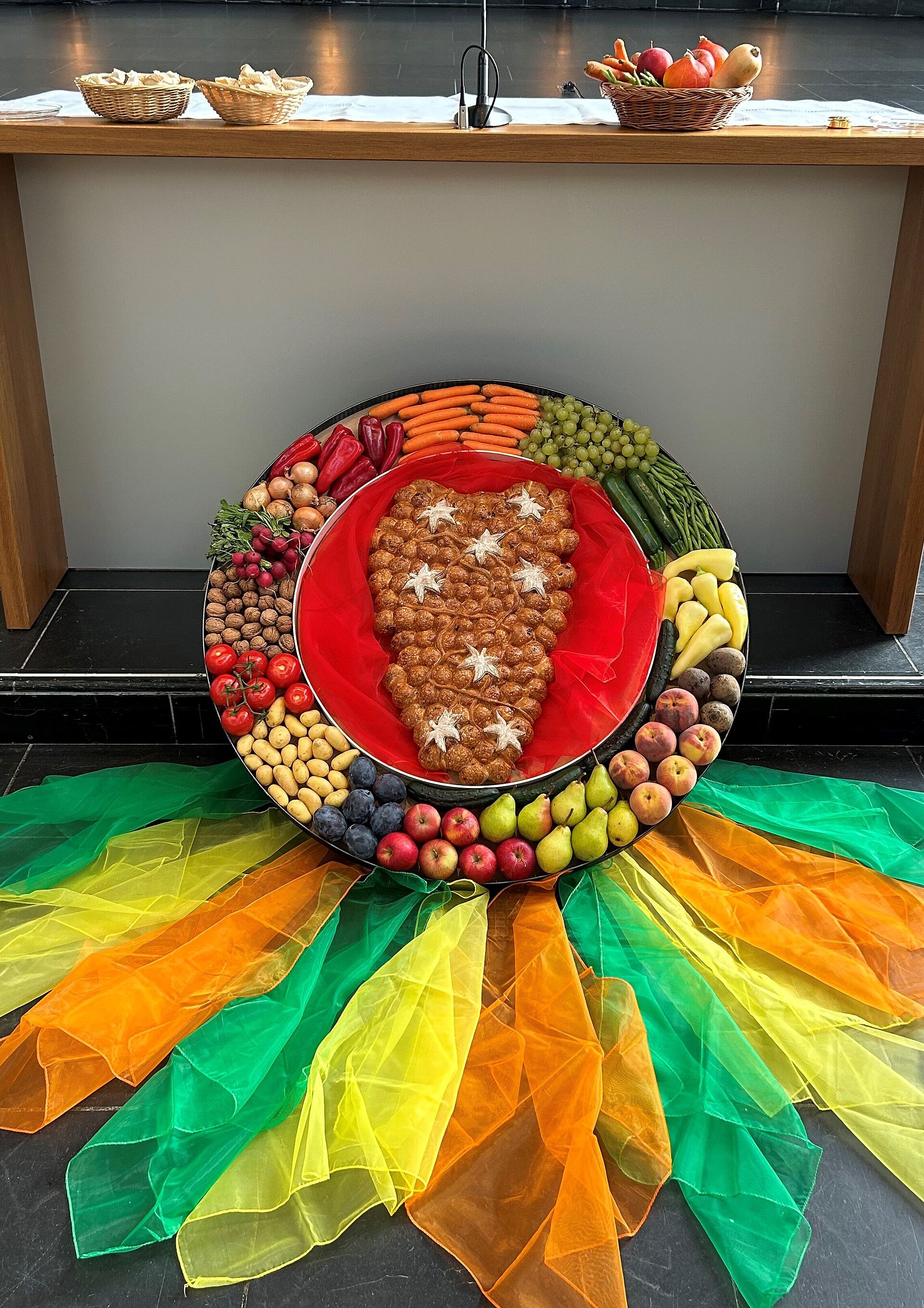 Anschliesslich beim Apéro teilten wir Brot, Früchte und Gemüse.