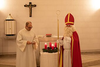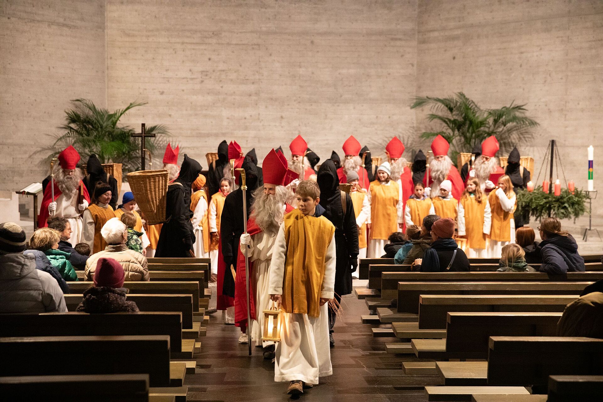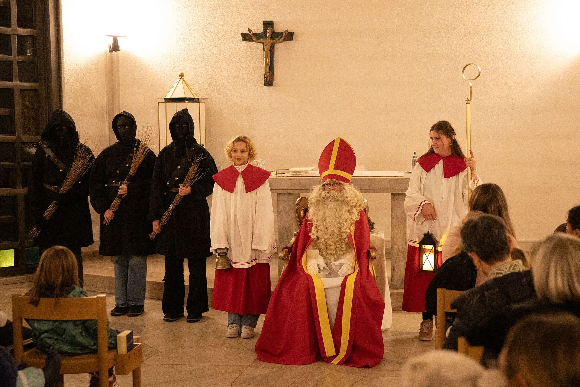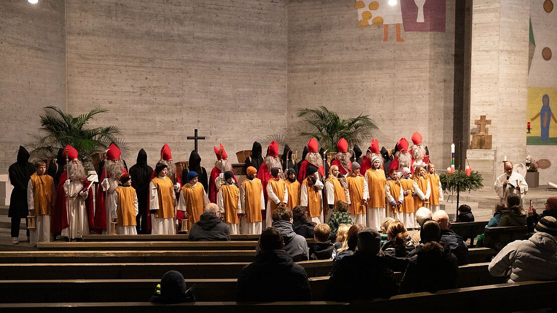 Dieses Jahr feiert die Pfarrei St. Anton das 70-Jahr-Jubiläum, mit monatlich jeweils einem besonderen Gast im Gottesdienst. Im Dezember ist dies der Samichlaus. Dieser erzählte von den Begegnungen in den Familien, und dass heute die Besuche durchaus einen feierlichen und ernsten Charakter haben und es dadurch viele schöne Begegnungen gibt.
