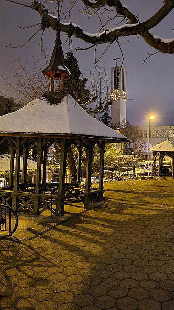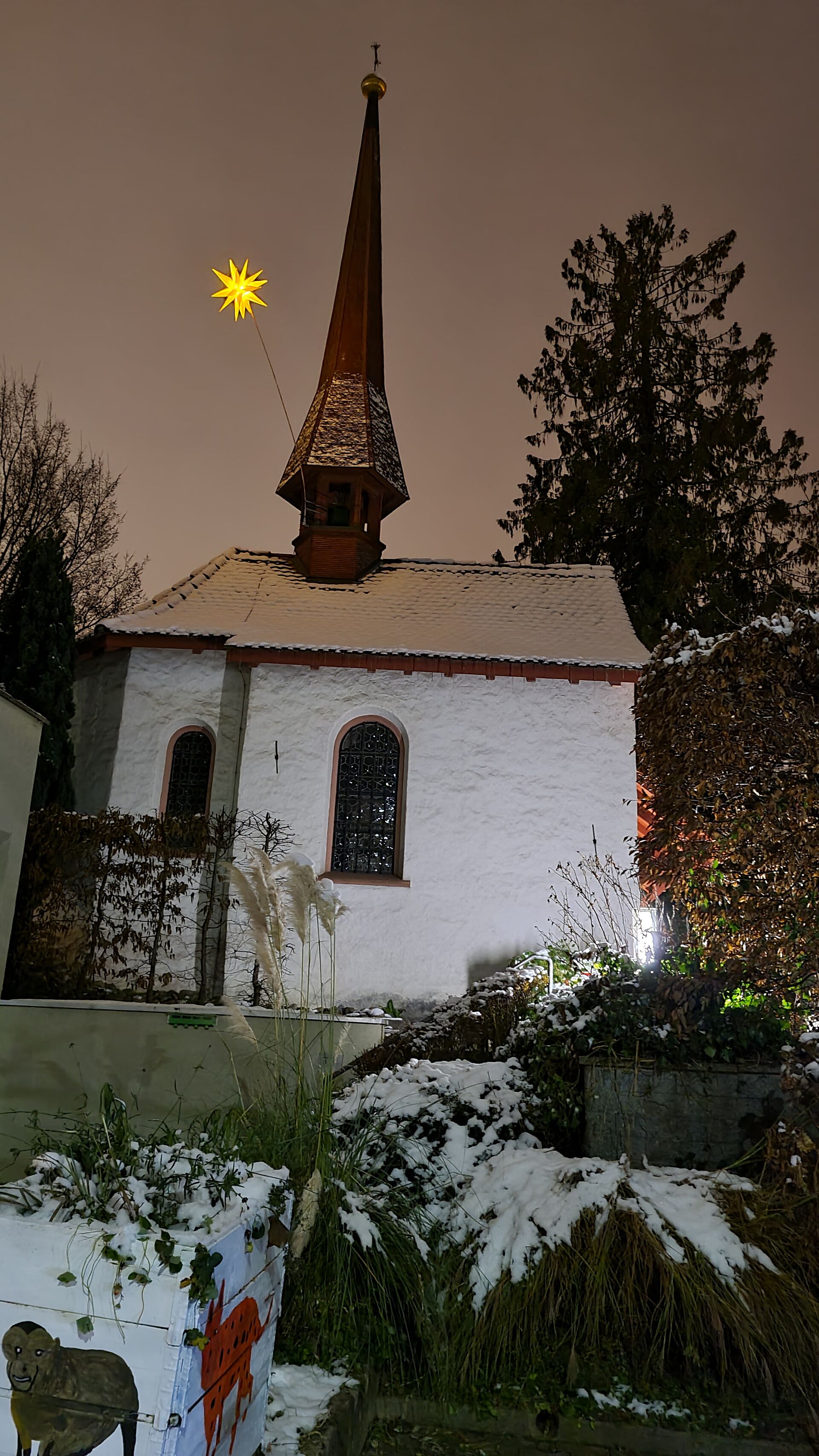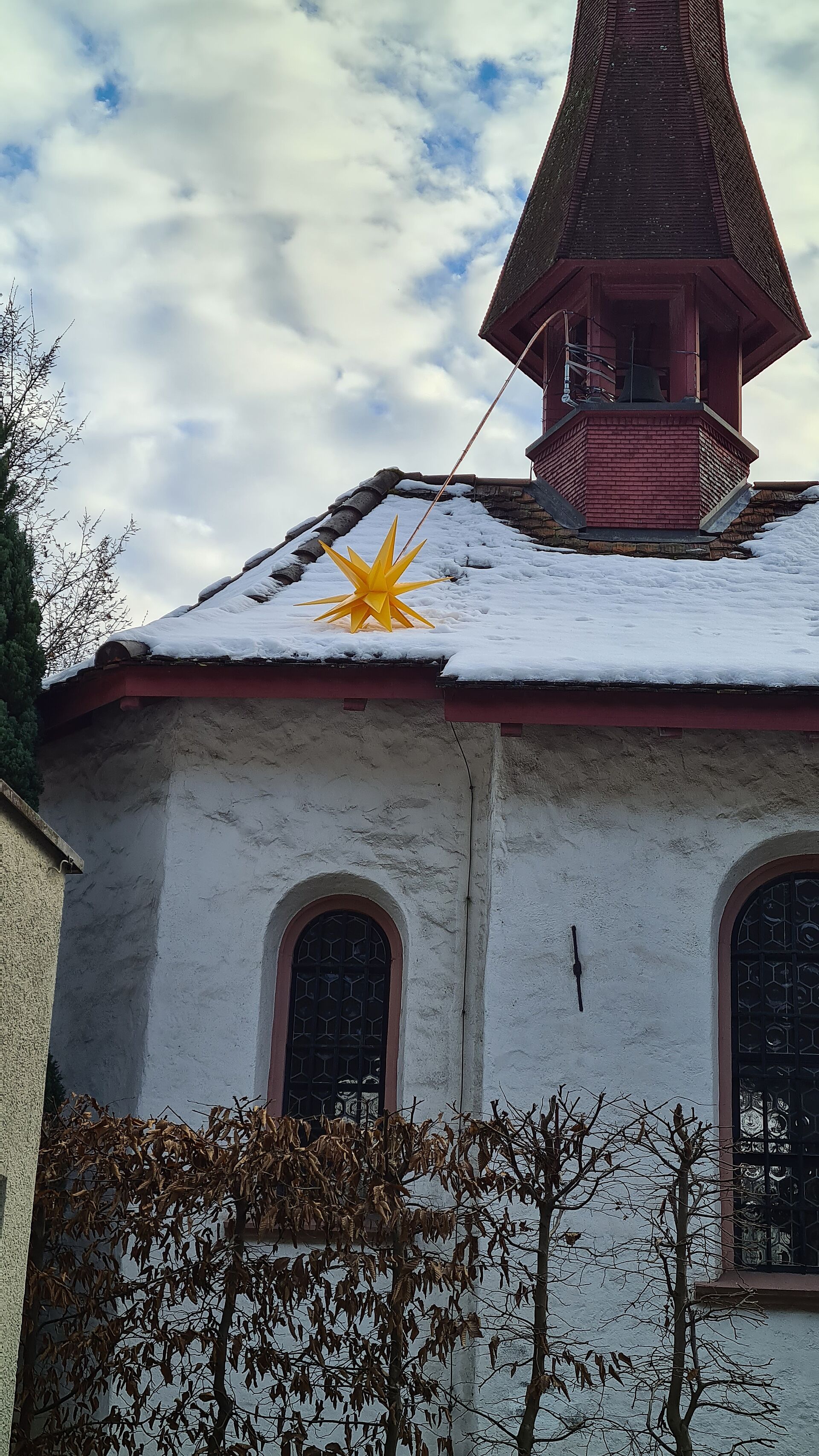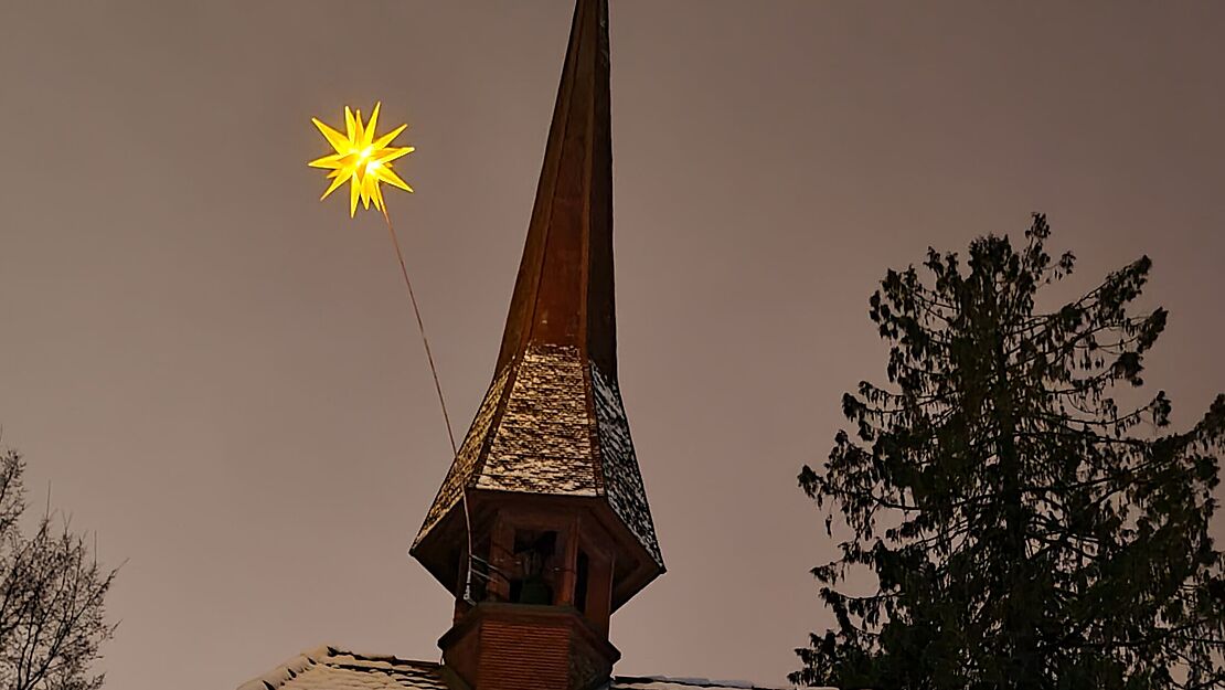 der Weihnachtsstern über der Kapelle leuchtet.