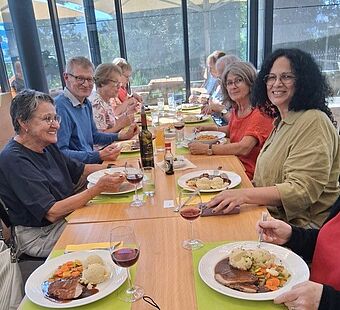 Im Restaurant des Museums genossen wir ein feines Mittagessen. Auf dem Rückweg über den Passwang wartete eine weitere Perle auf uns: das ehemalige Benediktinerkloster und heutige griechisch-orthodoxe Kloster Beinwil. Auch dazu hatte unsere kompetente Reiseführung Paul Hess viel Wissenswertes zu erzählen.