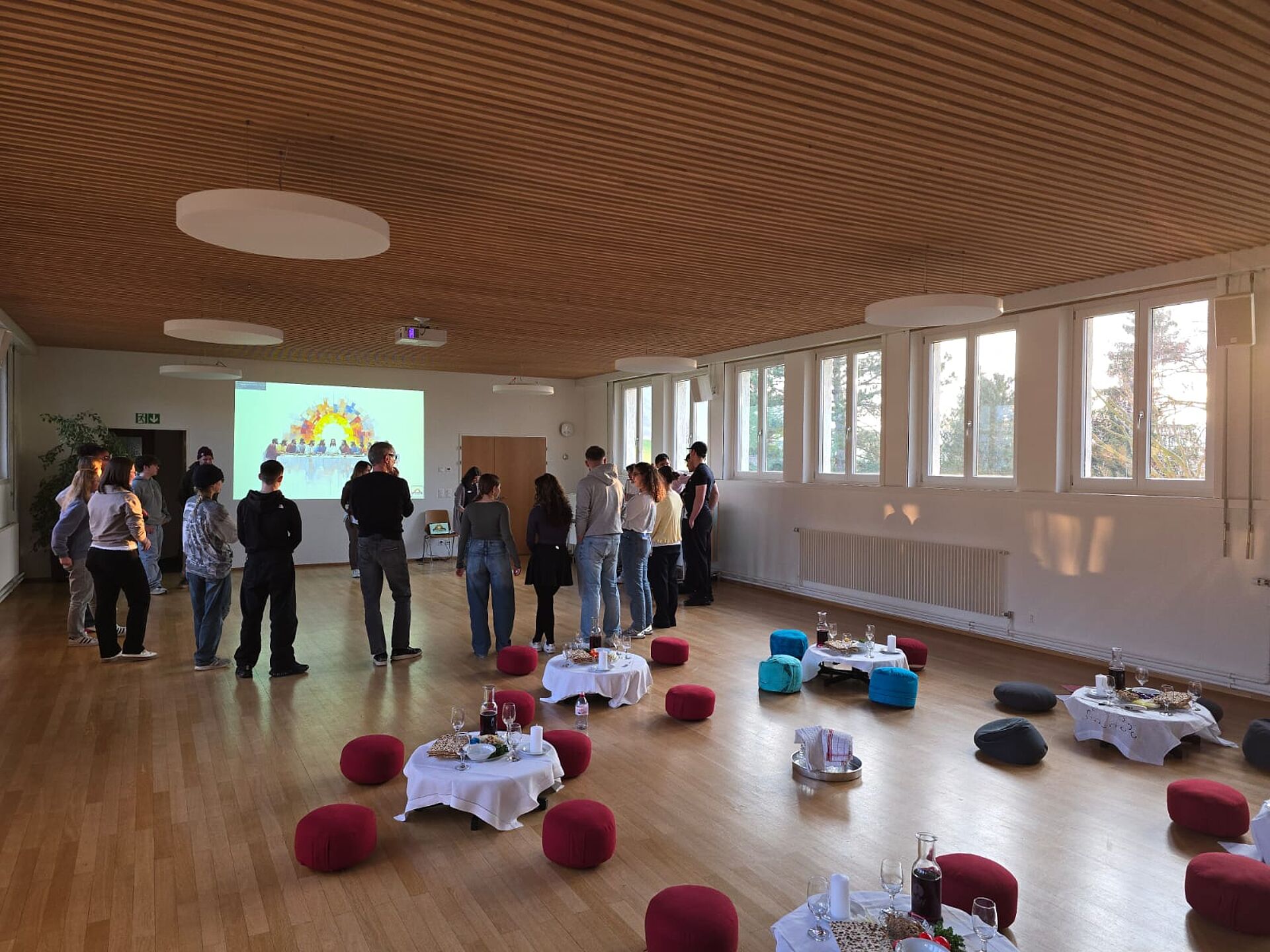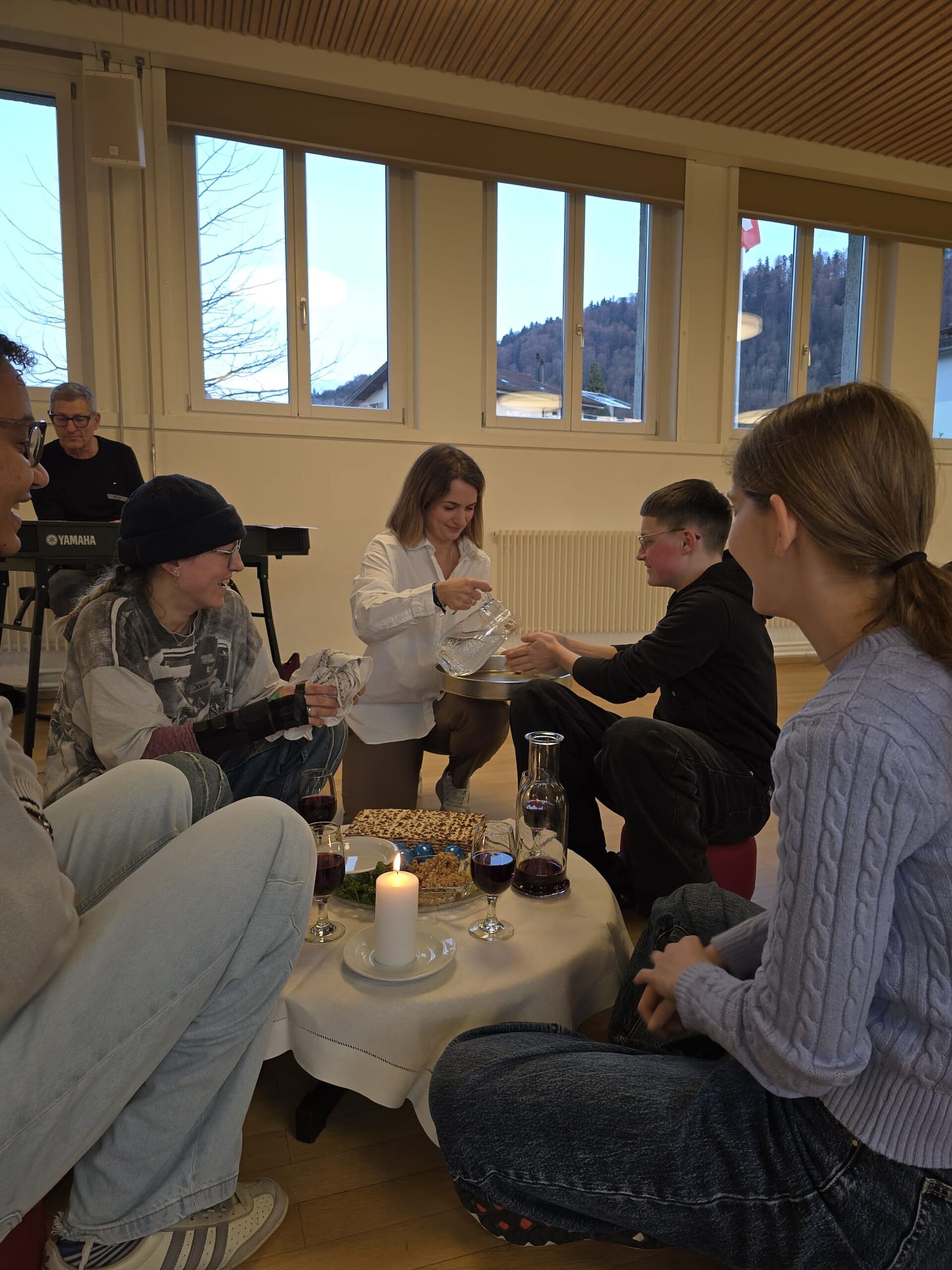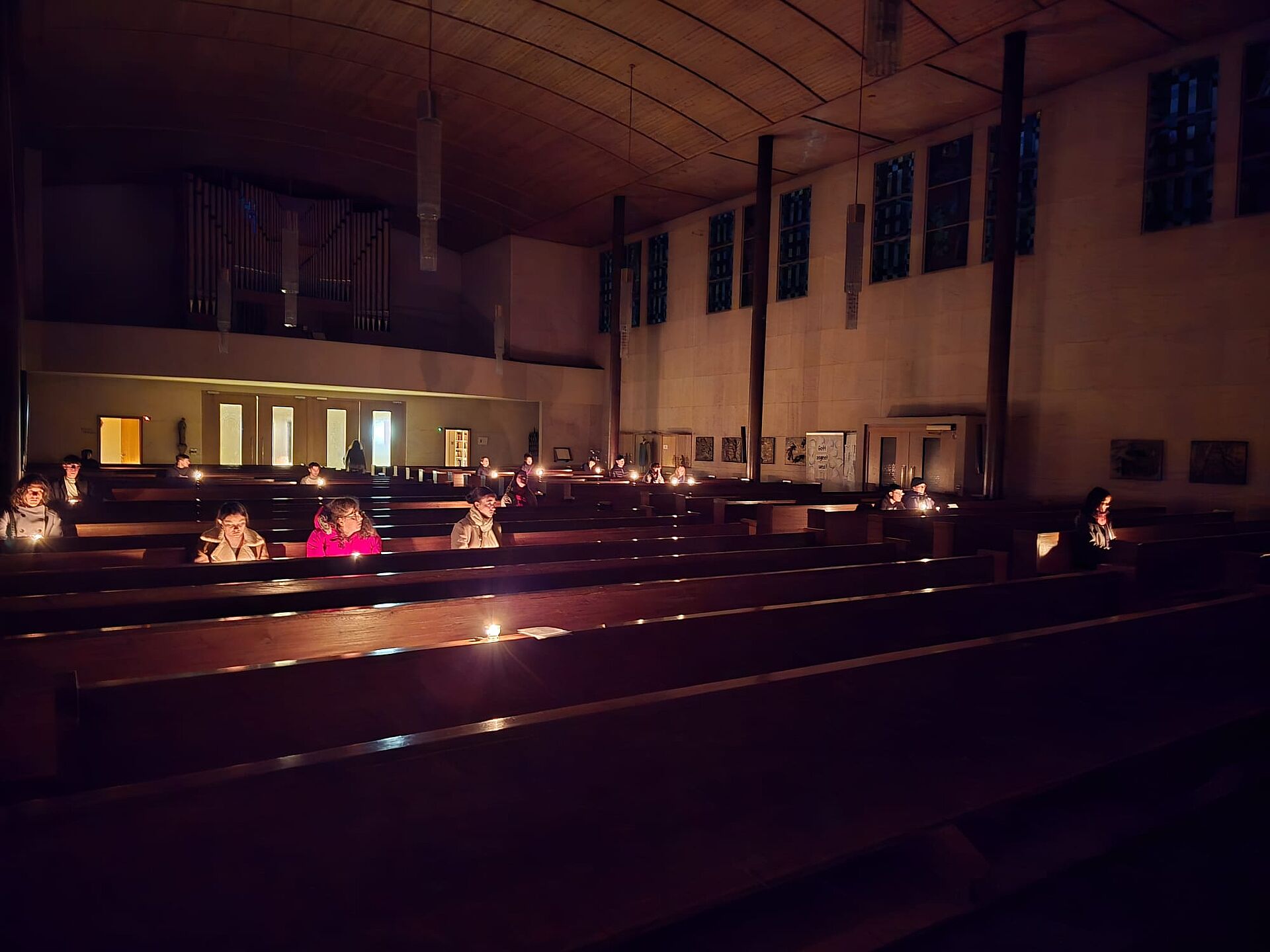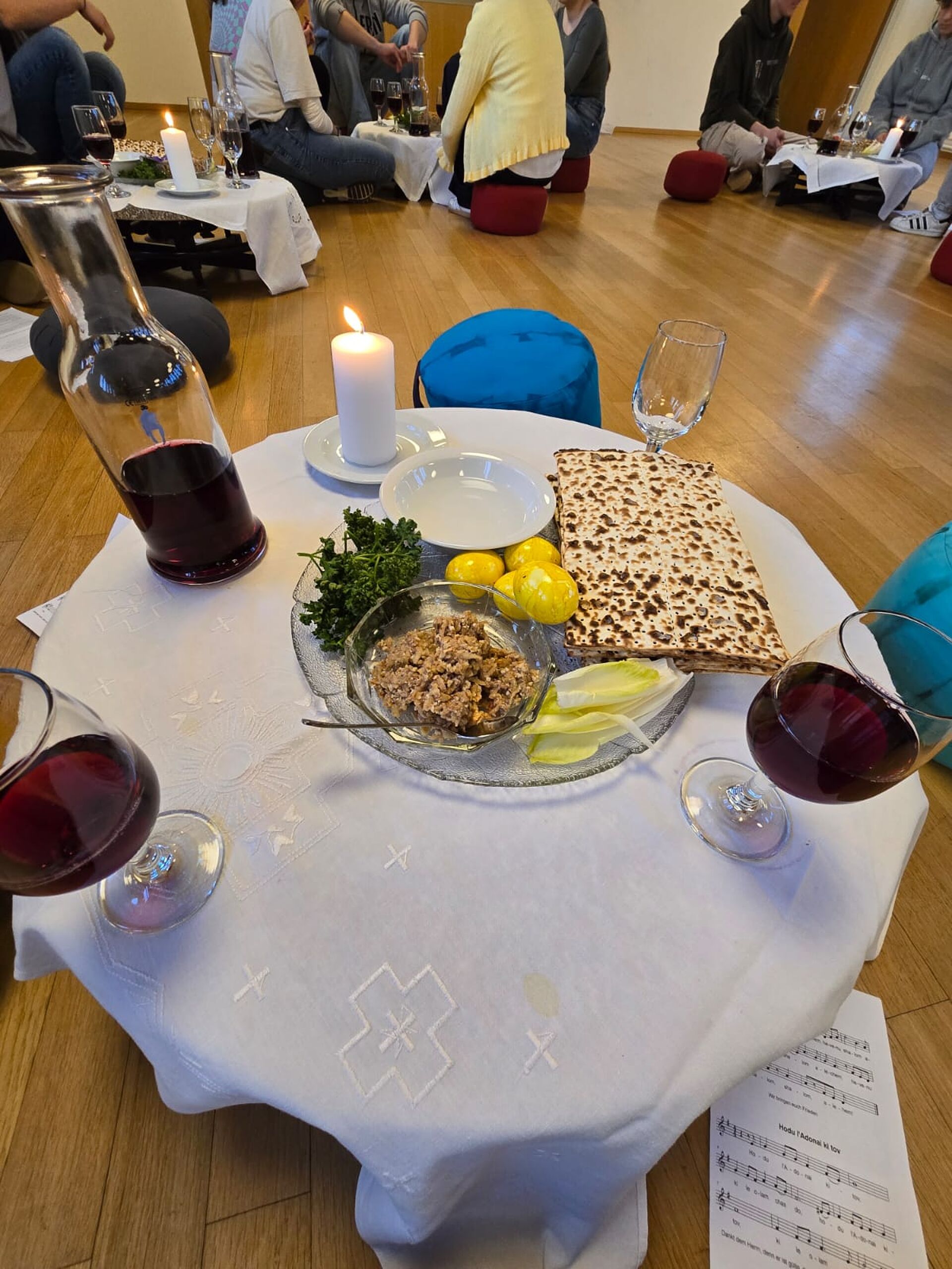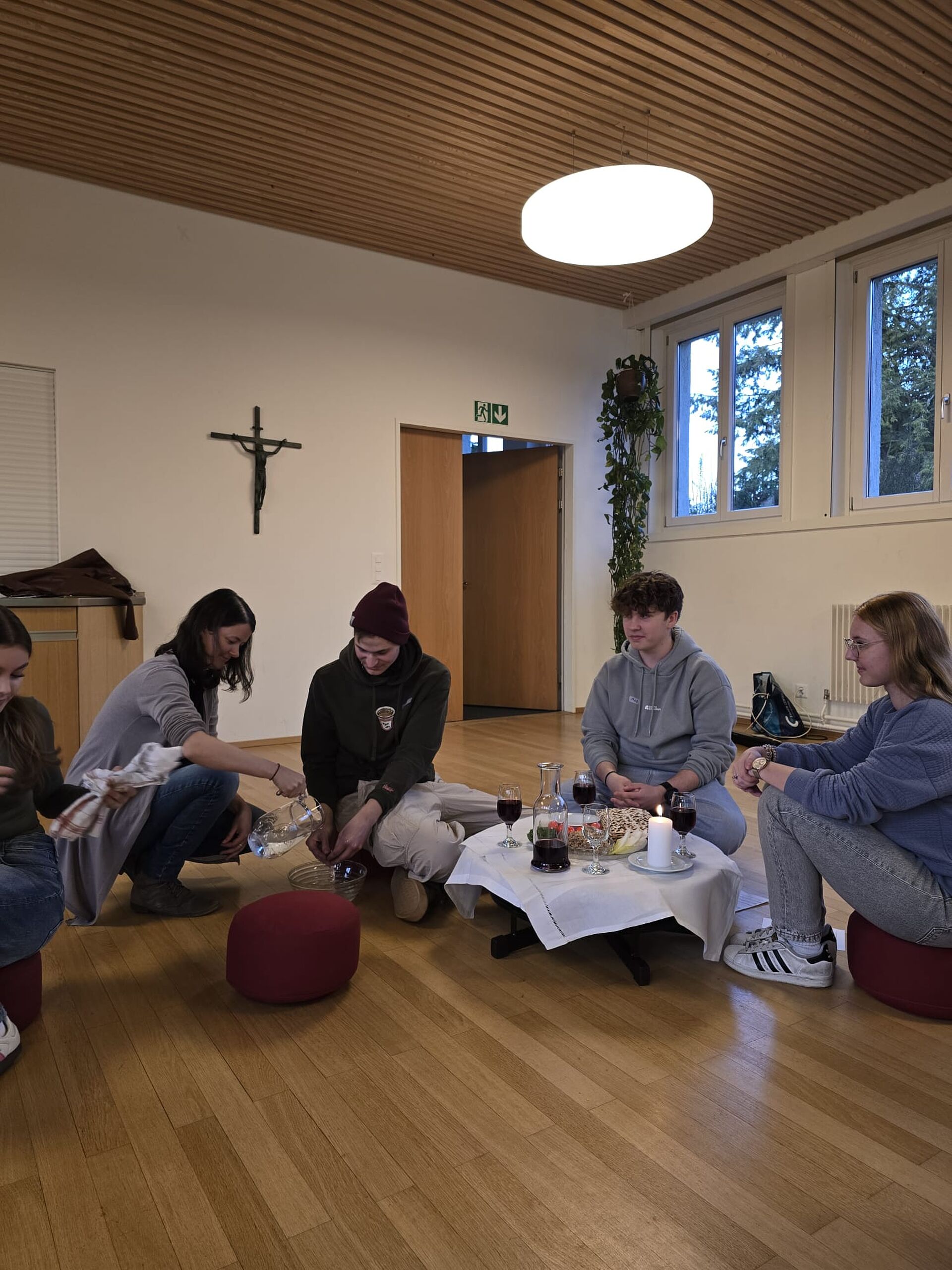 Jesus hat vor seinem Tod mit seinen Jüngern das Paschamahl gefeiert - das Erinnerungsfest an die Befreiung aus der Sklavenschaft. Dies haben auch wir getan, und uns so mit der jüdischen Verwurzelung unseres Glaubens verbunden. Dann lasen wir die Geschichte aus der Bibel, wie Jesus im Garten Getsemane betete und Angst hatte. Wir kamen darüber ins Gespräch, und haben erörtert, was diese Geschichte für uns heute heissen kann. Und schliesslich beteten wir und wachten in Kerzenschein in der Kirche - bis Mitternacht.