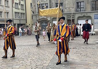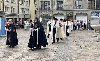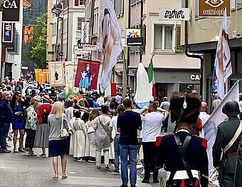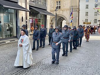 Rund 600 Personen haben am Donnerstagmorgen, 16. Juni, die Franziskanerkirche gefüllt, wo der mehrsprachige Festgottesdienst zum diesjährigen Fronleichnastag stattfand. Verschiedene Gruppierungen und Vereine, Pfarreien und Missionen gaben der Vielfalt unserer Kirche Ausdruck und zogen dann gemeinsam mit dem Allerheiligsten durch die Gassen der Altstadt bis zur Hofkirche, wo der eucharistische Segen über die Anwesenden und die Stadt gesprochen wurde.