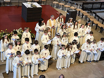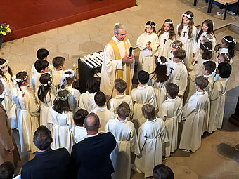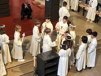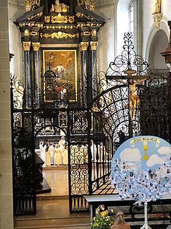 Nun endlich, nach intensiven Stationen der Vorbereitung kamen die Kinder der Hofkirche zum ersten Mal selber zum Tisch des Herrn und empfingen die Kommunion.