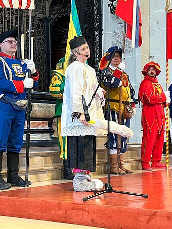 Pfarreileiterin Claudia Nuber – als Hof-Vikar – sowie Beat Jung – als Hof-Narr – leiteten den Gottesdienst.