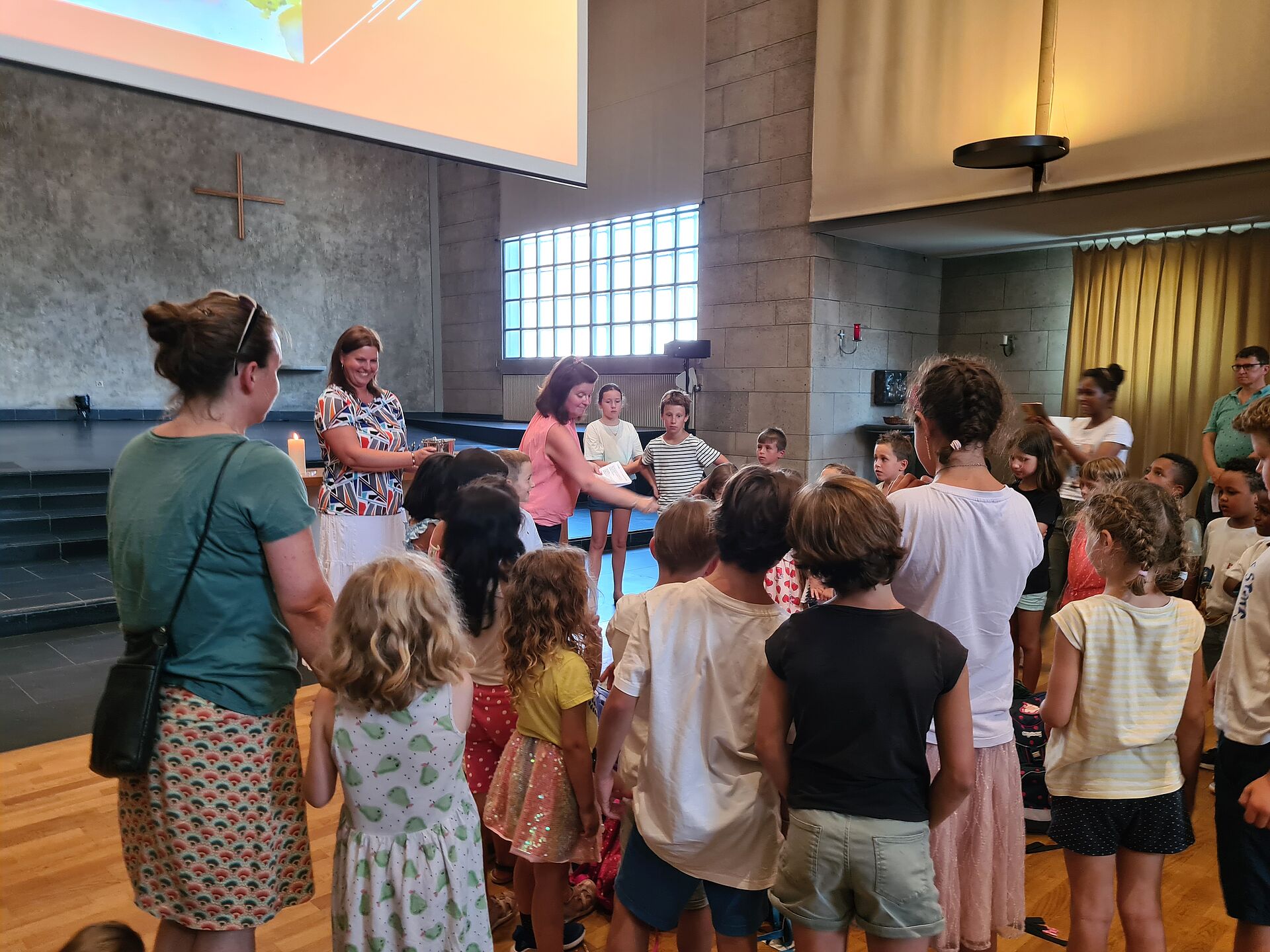 Gemeinsam wurde gebetet, gesungen und Gott um seinen Segen im neuen Schuljahr gebeten. Die Kinder und die Eltern, die sie begleitet haben, sowie auch die Schultheke und «Chindsgi»-Taschen wurden gesegnet. Nach dem Segensfeier gab es einen kleinen Apéro und die Gelegenheit, sich auszutauschen.