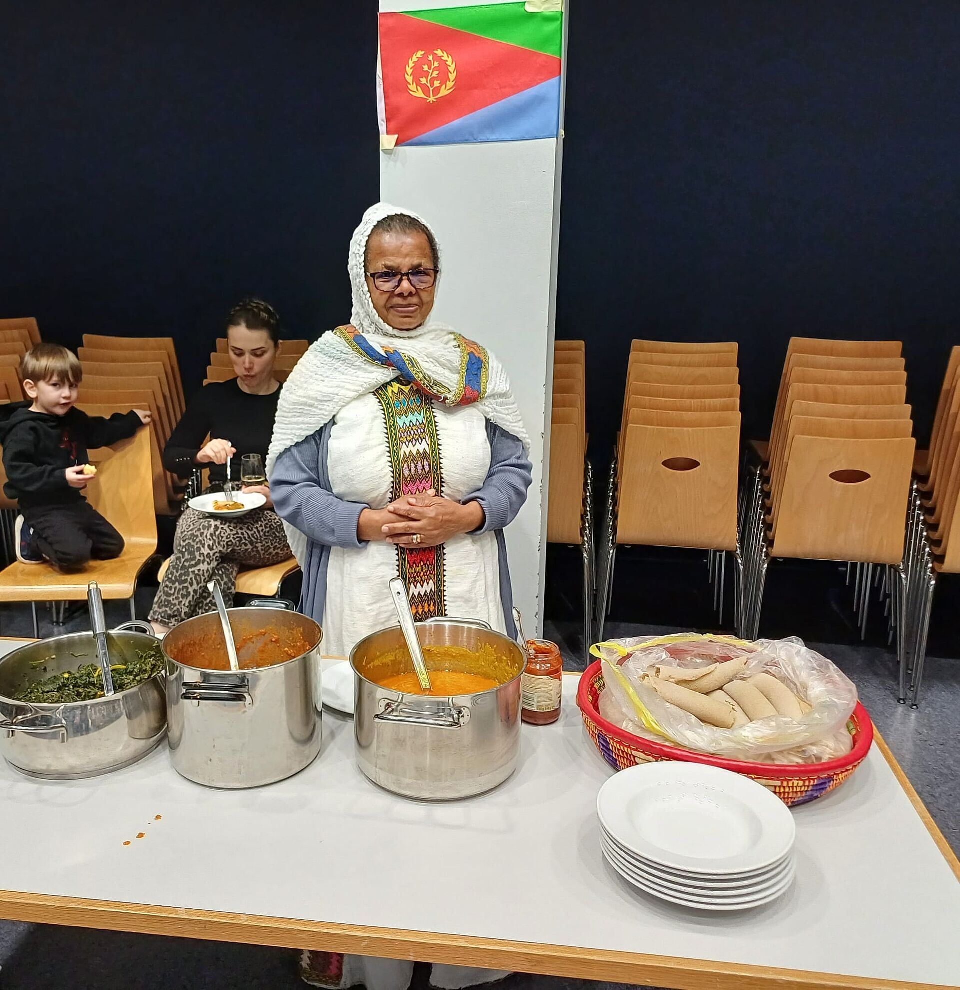Freiwillige Helferinnen und Helfer haben zuhause ihre Landesspezialitäten gekocht und so durften wir feinste Speisen aus der Schweiz, Italien, Malaysia, China, Brasilien, Eritrea, Sri Lanka, Vietnam und Spanien probieren.
