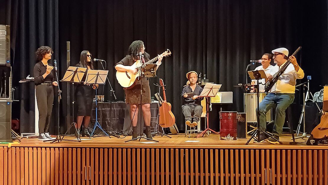 Zwischendurch spielte die brasilianische Band von Gloria Costa wundervolle Musik, sehnsüchtige Melodien, rassige Popmusik und tempramentvoller Salsa, egal welche Rhythmen, sie gingen direkt ins Herz und in die Beine.