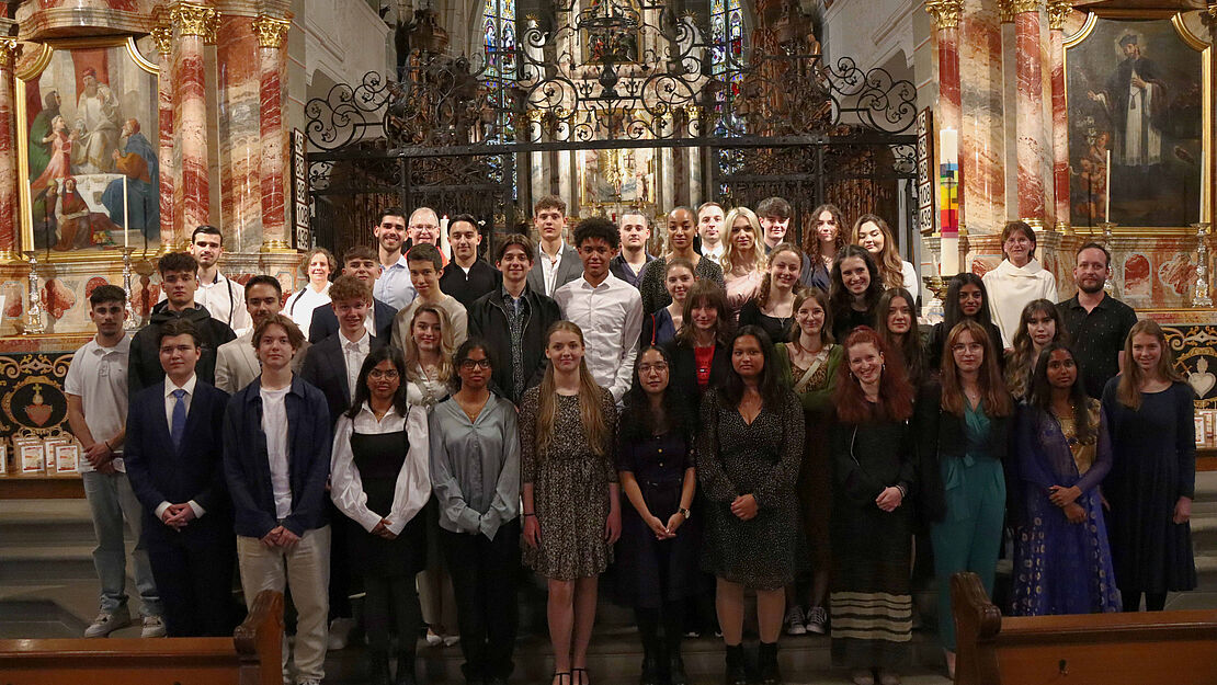 Die Erneuerung des Taufversprechens leitete danach über zur Firmung. Begleitet von ihren Paten und Patinnen traten die Firmlinge einzeln nach vorne, erhielten von Domherr Pius Troxler ein Kreuzzeichen auf die Stirn und wurden mit Chrisam gesalbt. Der Festgottesdienst wurde musikalisch von Freddie James an der Orgel begleitet.