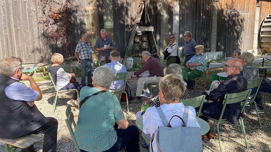 Gespannt lauschen die Teilnehmenden den Erklärungen zum Agrarmuseum Burgrain. Foto: zvg