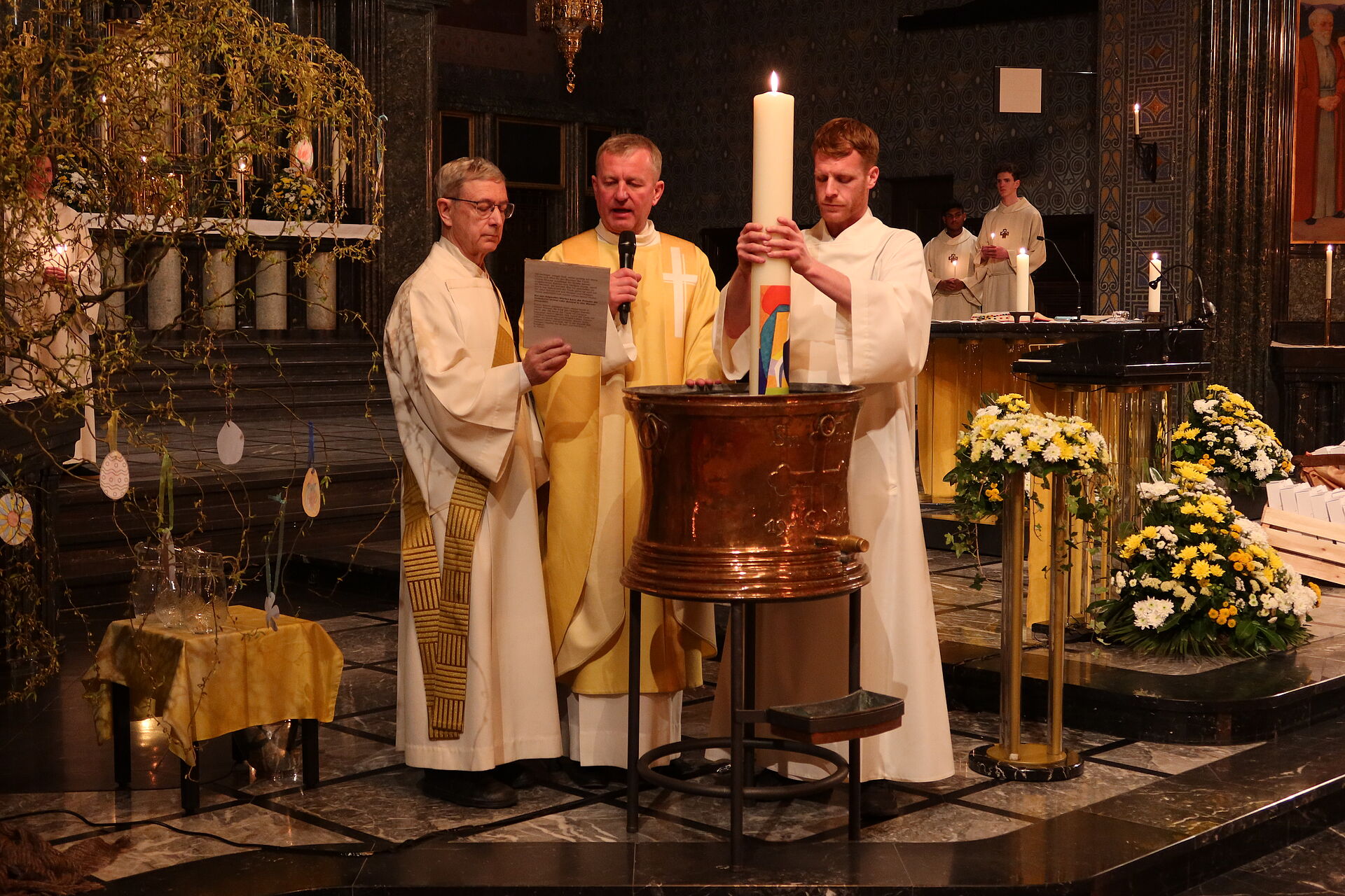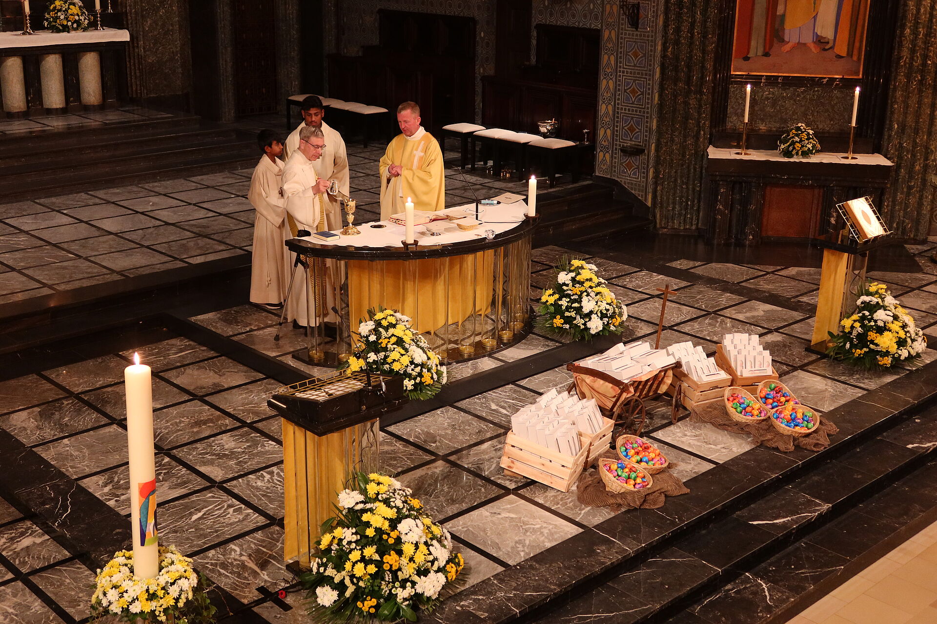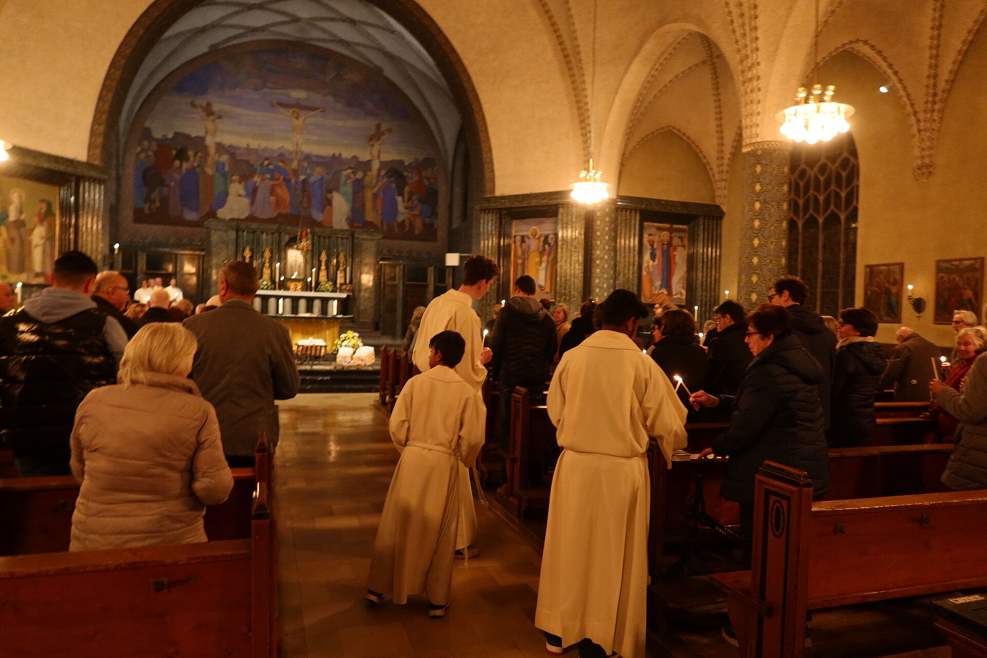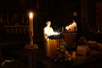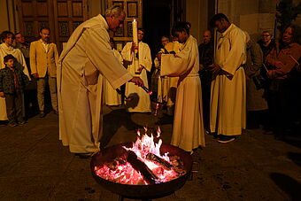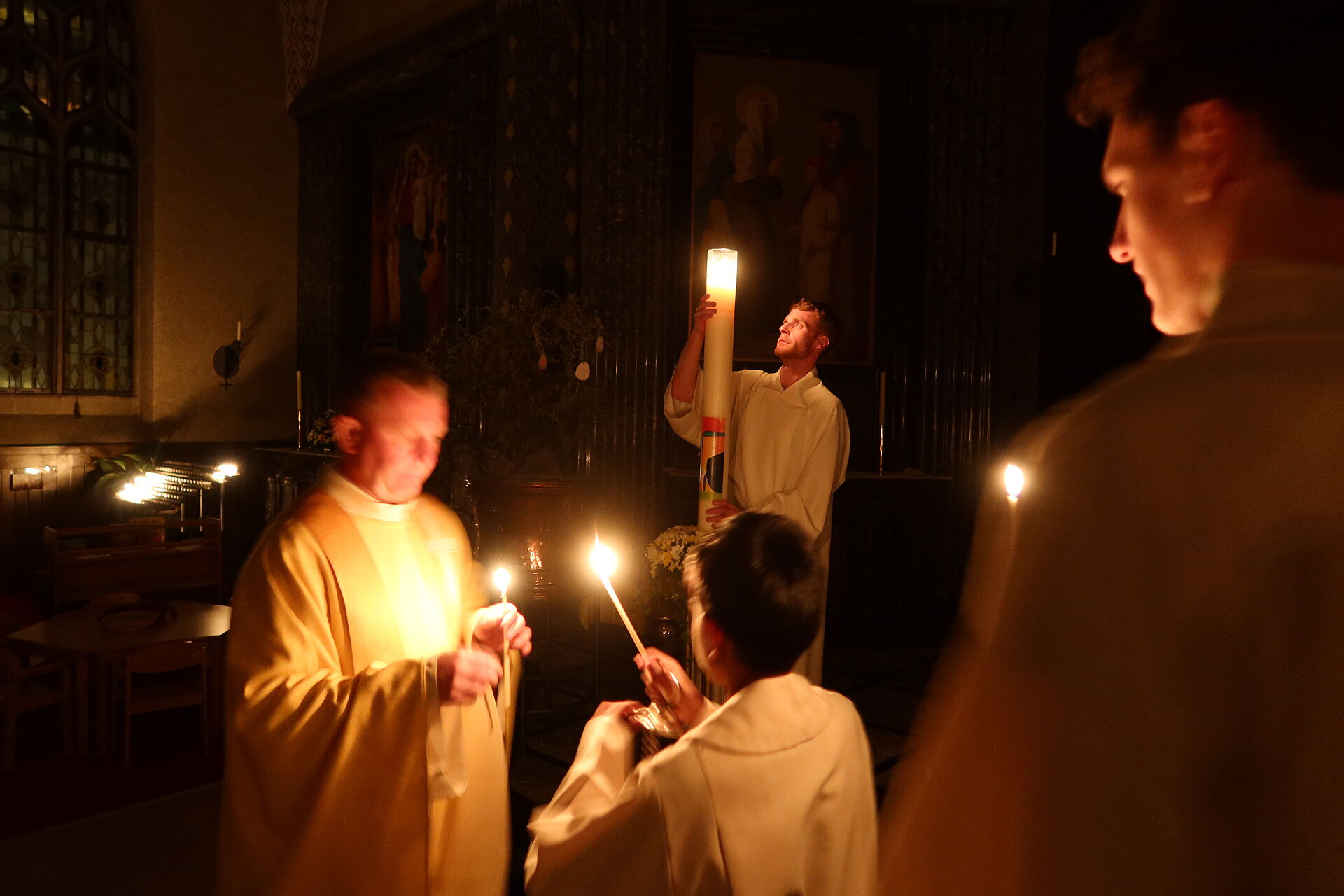 Die Osternachtfeier steckt voller Zeichen der Hoffnung und Zuversicht. Am Osterfeuer wir die Osterkerze entzündet und das Licht wird in die dunkle Kirche getragen. Das Licht wird geteilt, vermehrt sich und es wird immer heller. Die Auferstehungsfeier ist der Höhepunkt im Kirchenjahr und spendet uns durch die starken Zeichenhandlungen und die biblischen Texte immer wieder neue Hoffnung, Kraft und Zuversicht.
