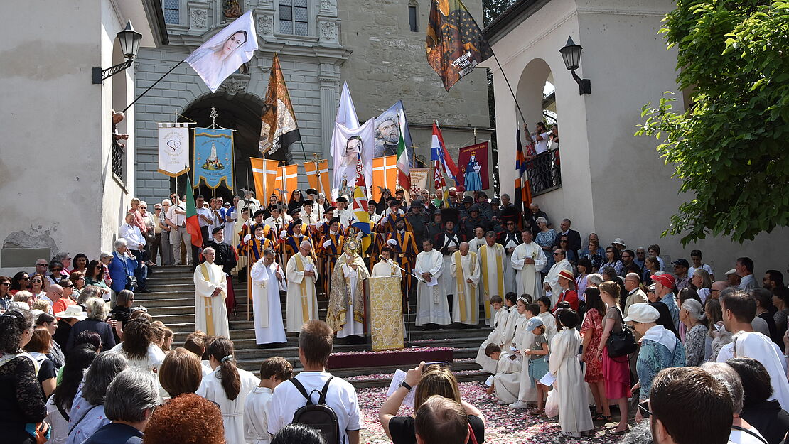 Wegen der hohen Regenwahrscheinlichkeit muss die Prozession von der Franziskanerkirche zur Hofkirche in diesem Jahr abgesagt werden. Der Festgottesdienst in der Franziskanerkirche beginnt unverändert um 9 Uhr (Gruppen und Kirchenmusik beginnen mit dem Einzug bereits um 8.50 Uhr). Den Gottesdienst leitet Stiftspropst Christoph Sterkman, die Predigt hält Claudia Nuber, Pfarreileiterin der Hofkirche. Die musikalische Gestaltung liegt in den Händen von Freddie James an der Orgel und dem Vokalkonsort zu Franziskanern unter der Leitung von Ulrike Grosch.