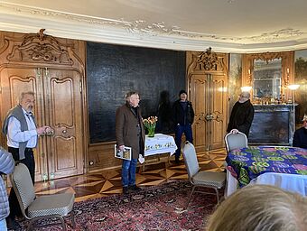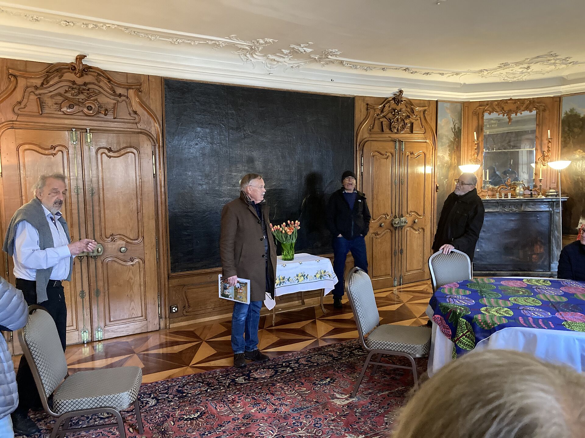 Romano Mina vermittelte den Teilnehmenden spannende Geschichten und Informationen aus dem Leben vergangener Zeiten in Luzern, er führte durch (- auch LuzernerInnen -) beinahe unbekannte Gassen wie das Schwyngässli, berichtete aus dem Leben bedeutender Bürger von Luzern wie Vinzenz Rüttimann (1769-1844). Einen interessanten Einblick in den Wohnstil reicher Bürger des 18. Jahrhunderts gab der Besuch des schmuckvollen Barocksaals im Ronca-Haus im Zöpfli.