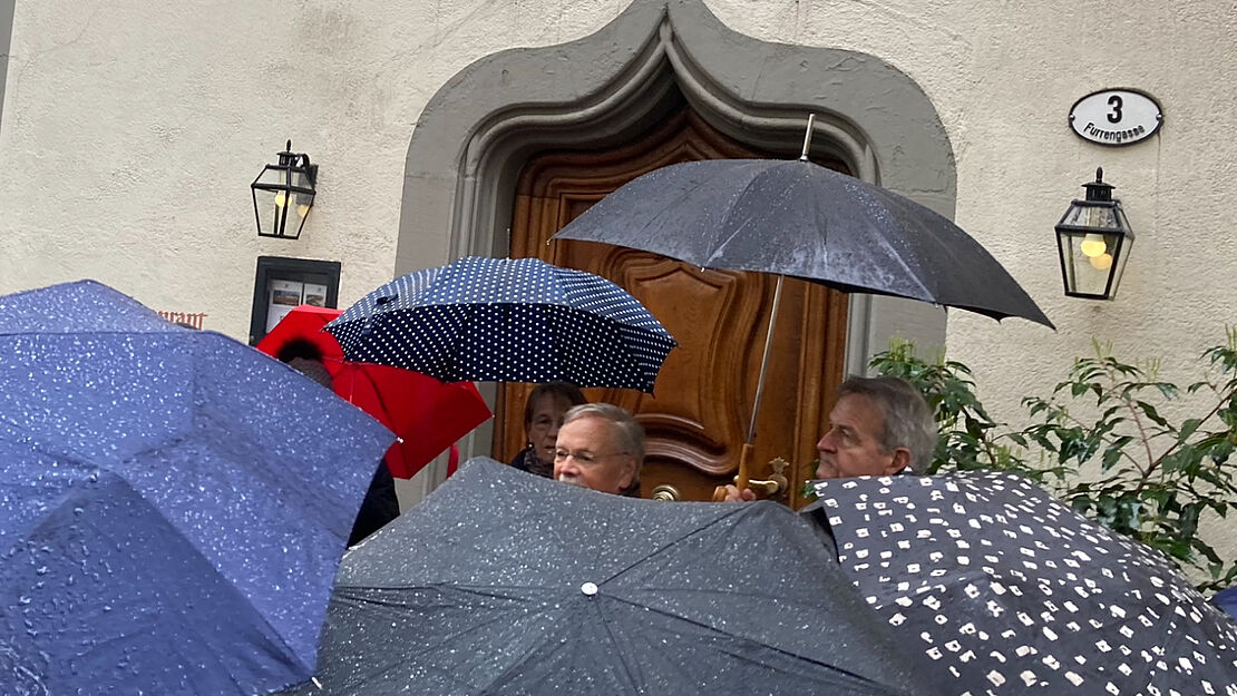 Kein Einsehen mit der Gruppe zeigte der Wettergott. Von Regen, Wind und Kälte gezeichnet, genossen die Teilnehmenden zum Abschluss der spannenden Führung durch die Luzerner Altstadt ein gemeinsames Nachtessen in der warmen Stube vom Restaurant Modomio.