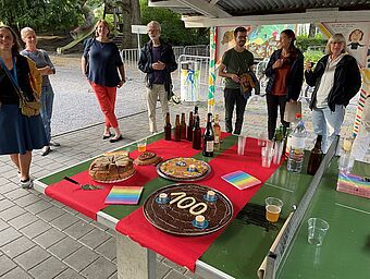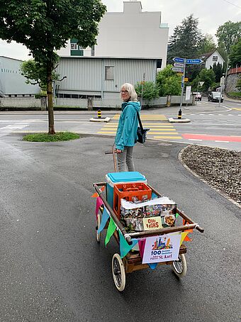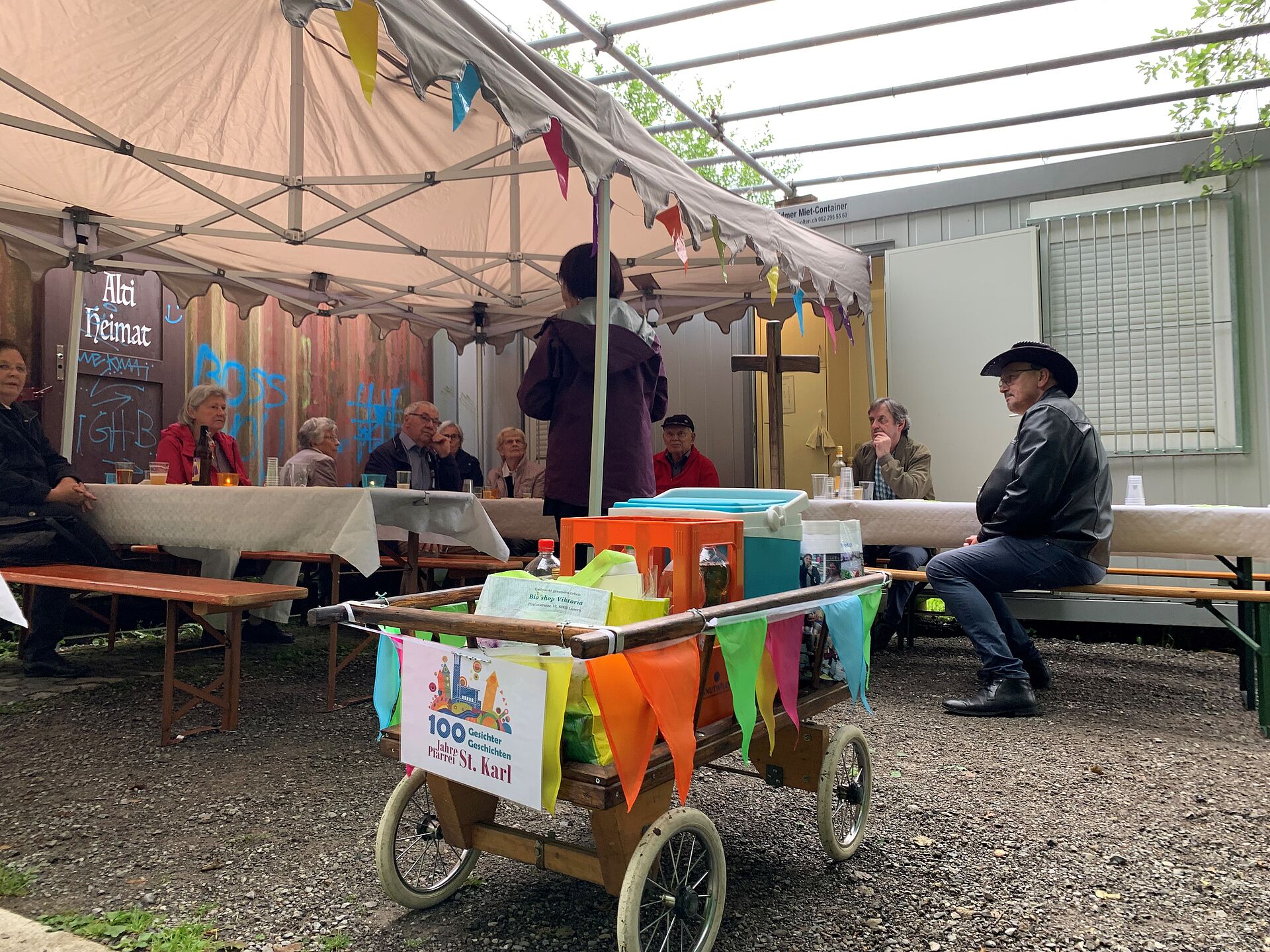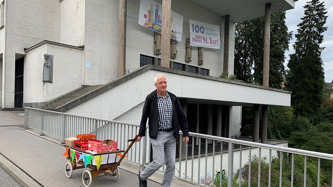Das Pfarreiteam hat sich dazu extra einen Feier-Leiterwagen angeschafft. Gefüllt mit Getränken, Sandwiches und natürlich Geburtstagskuchen konnten diesen Sommer drei Feiern abgehalten werden. Im Juni zog das Team mit Leiterwagen los zum Grenzhof. Im August besuchte es das Quartierzmorge vom Quartierverein Luegisland und dann traf man sich auch noch im beliebten Dammgärtli. Immer kam es beim Anstossen und Kuchenessen zu schönen Begegnungen.