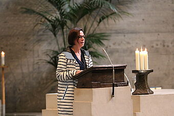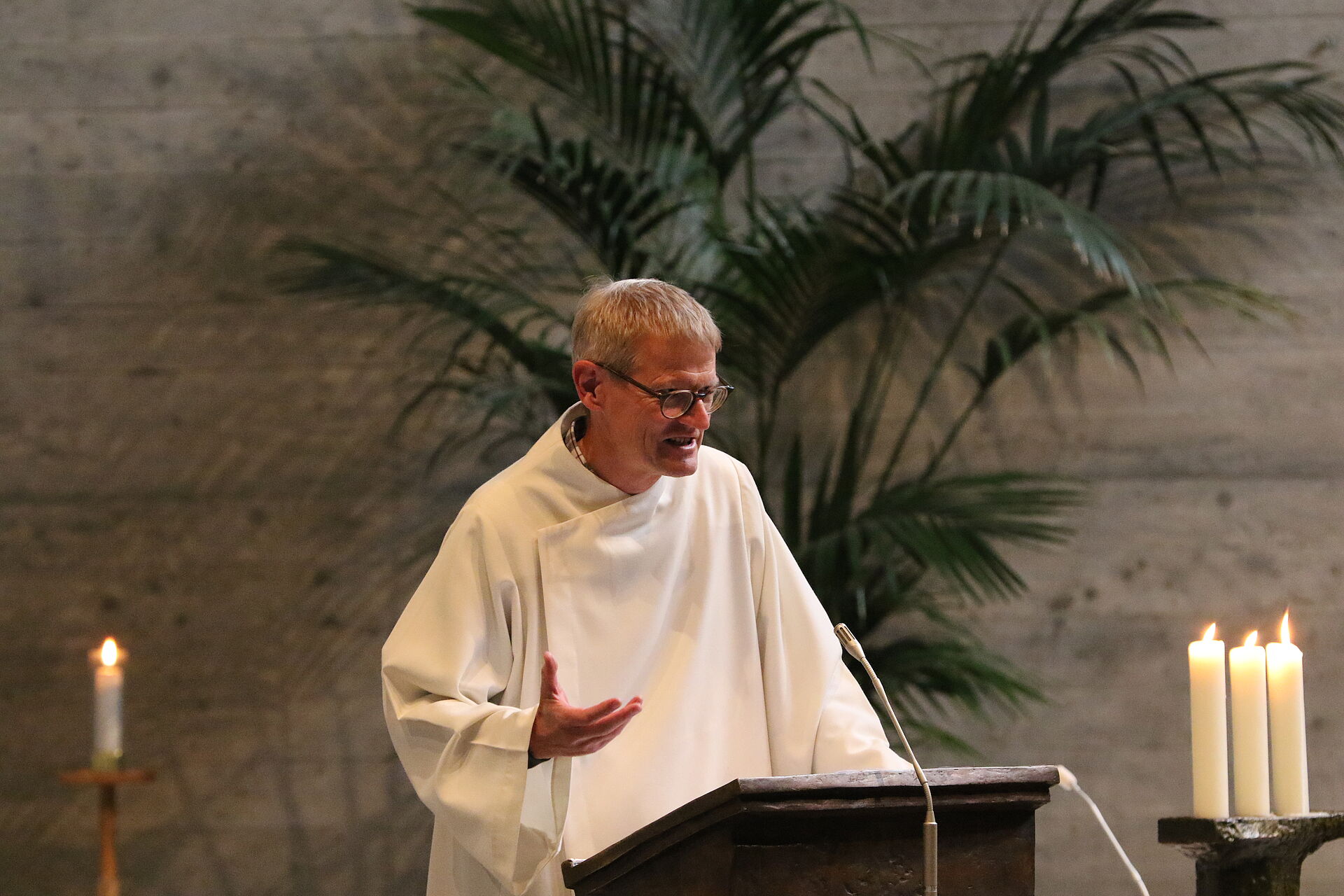 Ausgehend von der Darstellung des Heiligen Michael in der Kirche sprach Urs Brunner über die Frage der Gerechtigkeit, die wie ein roter Faden die Bibel durchzieht. Nicht an Worten, sondern an Taten misst sich das Eintreten für diese Tugend. Und da der 25. September auch der Namenstag von Bruder Klaus ist, wurde die Frage gestellt, woraus wir heute Kraft schöpfen können.