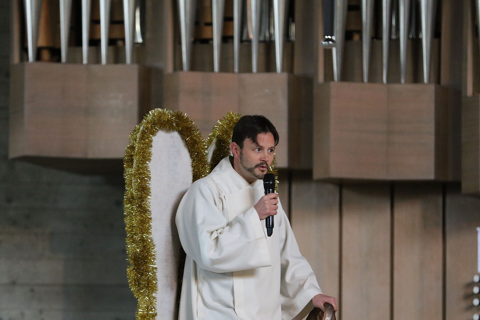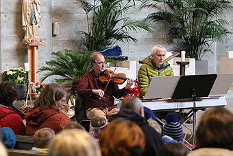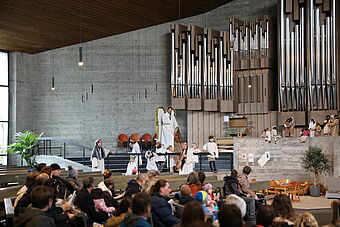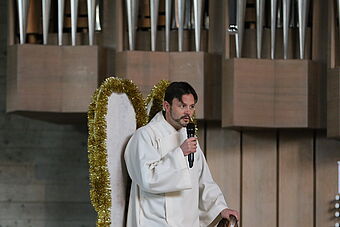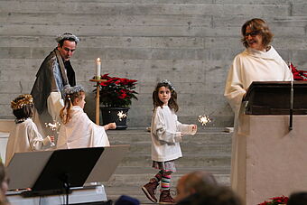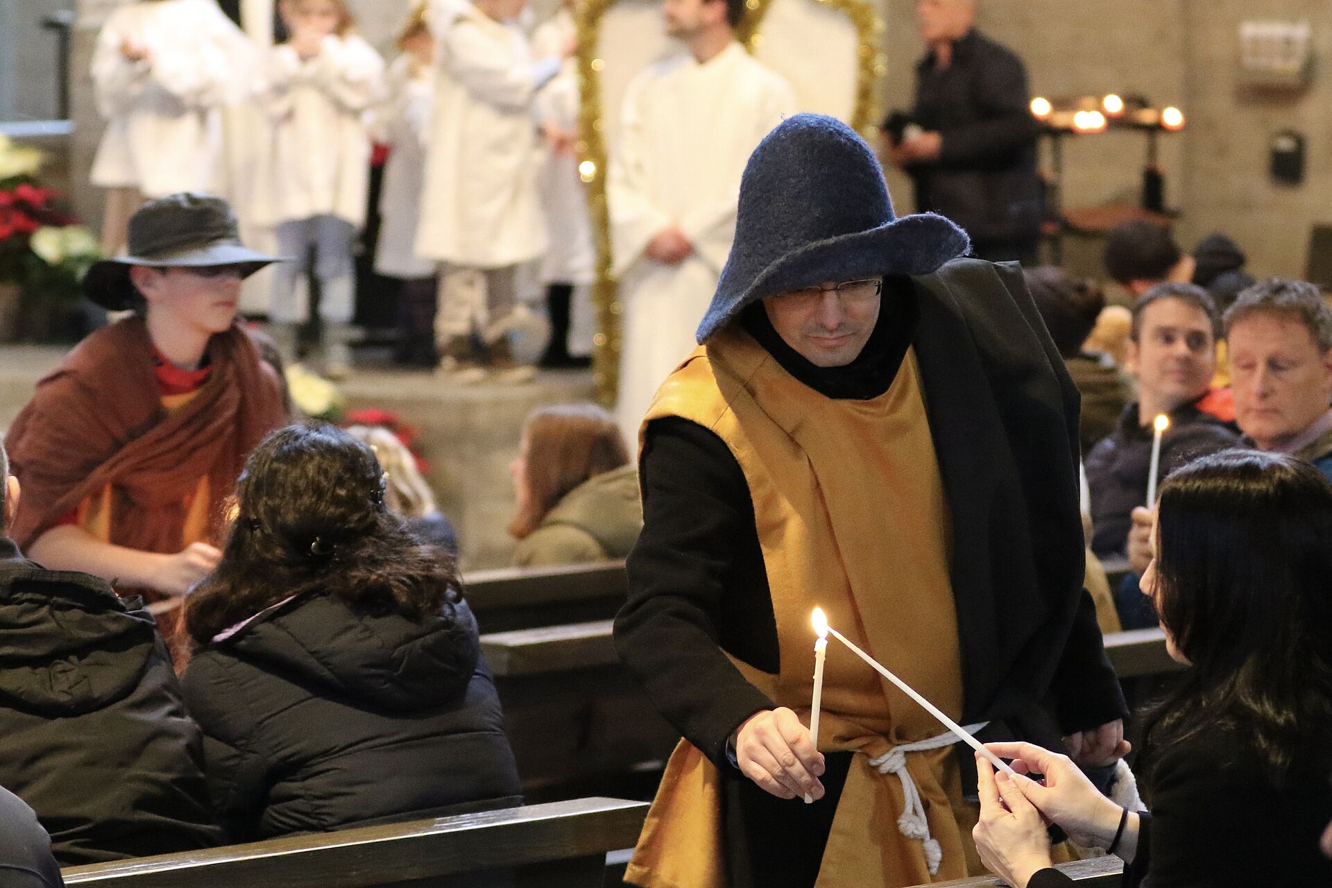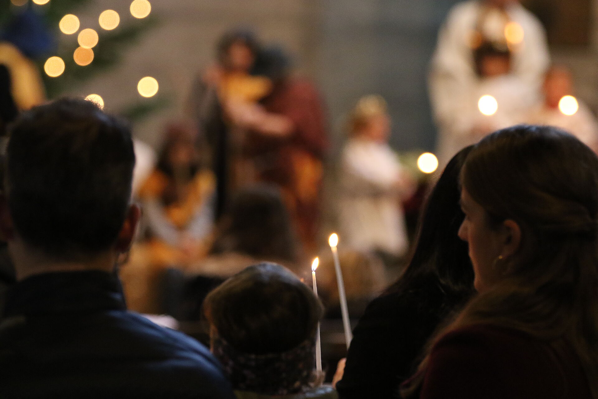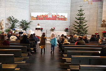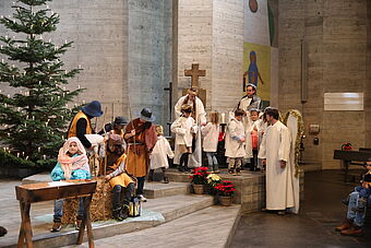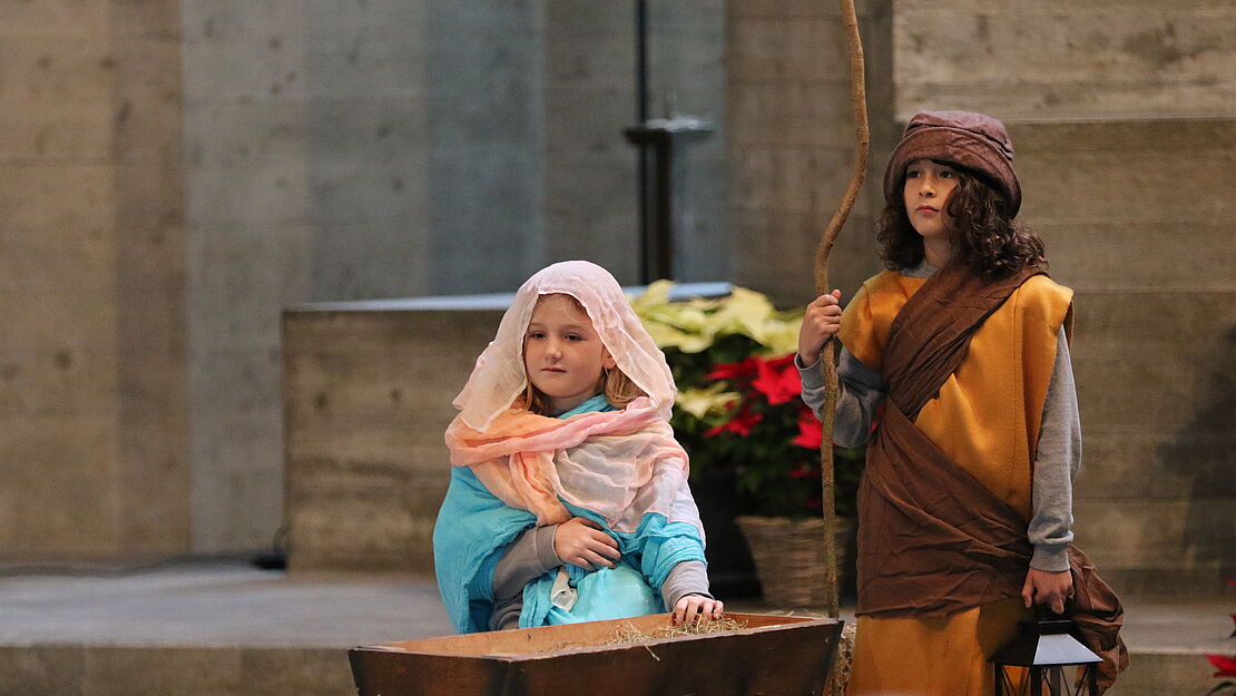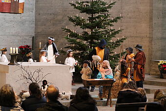 Viele Kinder und Eltern spielten an der Mitmachkrippenfeier die Weihnachtsgeschichte nach: Maria und Josef gingen ihren Weg, die Hirten kamen zum Stall, die Engel verkündeten eine grosse Freude. Die weihnächtlichen Lieder und der Kerzenschein brachten eine schöne Stimmung in die Kirche St. Michael.