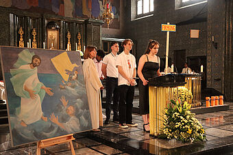 Die Predigt von Abt Christian wies auf das Vertrauen hin, dass Gott grösser ist als jede Welle und jeder Sturm. Die «Sturmstillung» aus dem Markusevangelium, die von den Firmanden ausgelesen wurde, will uns vermitteln, dass wir uns nicht durch Schreckensnachrichten in die Tiefe ziehen lassen sollen. Wir werden im Gegenteil aufgefordert, gute Nachrichten zu suchen, einander in «Seenot» helfend zur Seite zu stehen, damit der Glaube und die