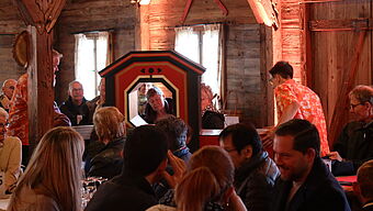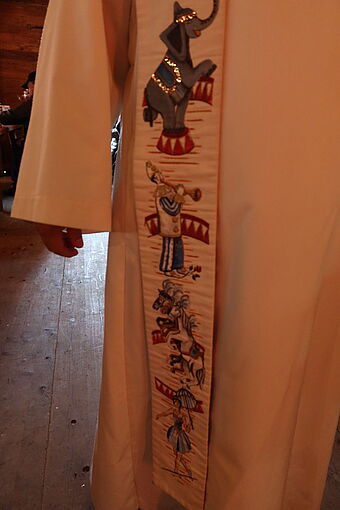 Den Gottesdienst leiteten Adrian Bolzern, Circus-, Schausteller- u. Markthändler Seelsorger, und Claudia Nuber, Pfarreileiterin St. Leodegar im Hof. Richtig bunt und fröhlich wurde der Gottesdienst durch die Darbietungen der Familie Paffrath und die Musik von Bandleader Marco Gottardi. Passend zum Thema Schatz im Acker wurde zu Beginn ein Schatz herbeigezaubert. Jedoch war es eine leere Schatztruhe. Diese mit Freude und Dankbarkeit jeden Tag neu zu füllen, war Thema des Gottesdienstes.