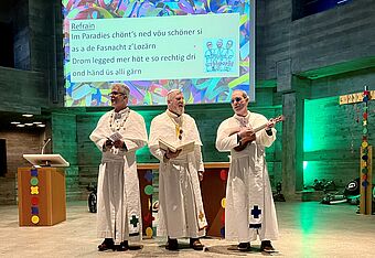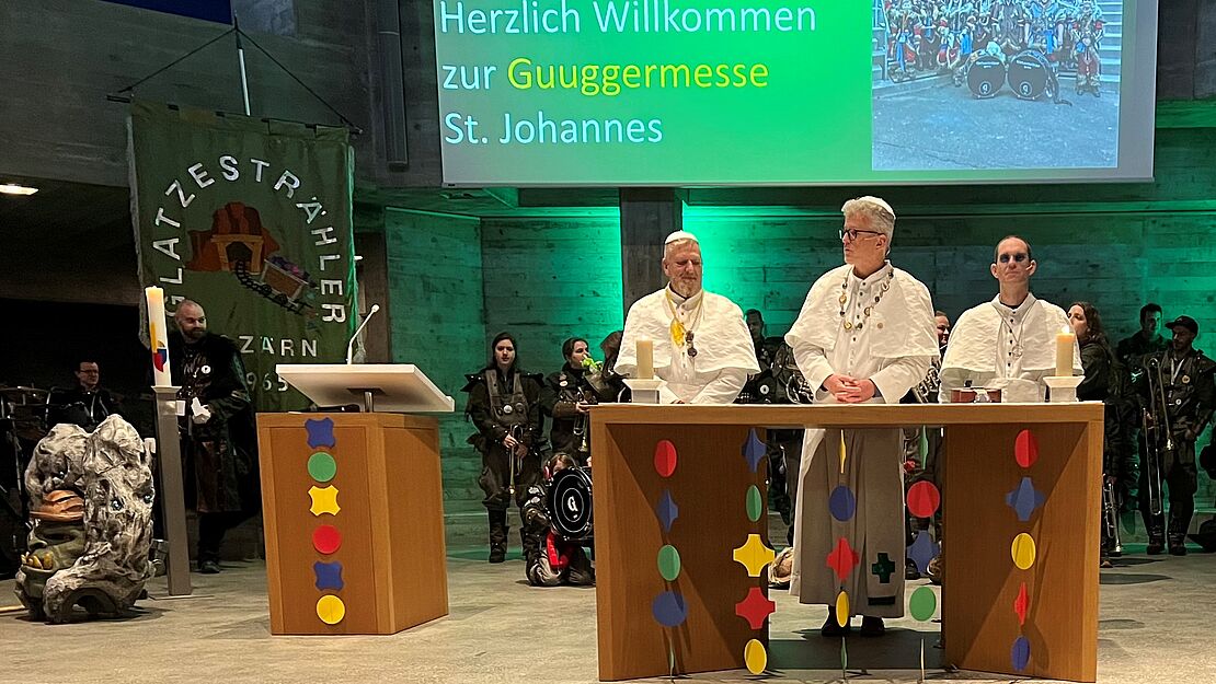 Himmlisch-schräge Töne von den Glatzestrählern, heiter-träfe Sprüche von urbi@orbi und gegen 500 fröhliche Fasnächtler:innen erfüllten die mit Konfettis geschmückte Johanneskirche.