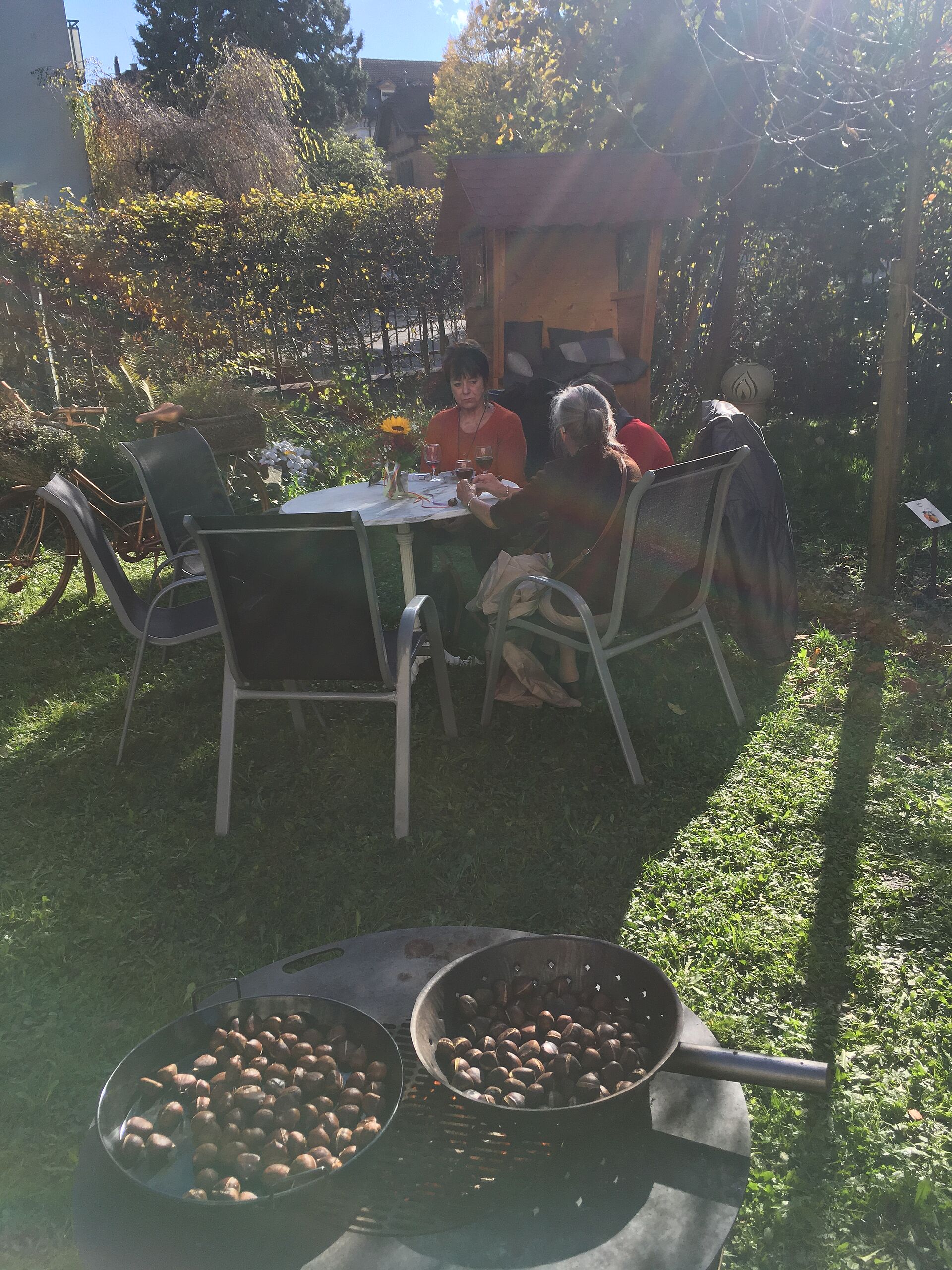 Es herbstet - es ist Marronizeit. Bei herrlichem Herbstwetter haben wir im Garten Marroni gebraten und genossen. Die Zeit für Geselligkeit, Genuss und Austausch wurde von Klein und Gross sehr geschätzt. Herzlichen Dank allen, für das schöne Miteinander an diesem Nachmittag.