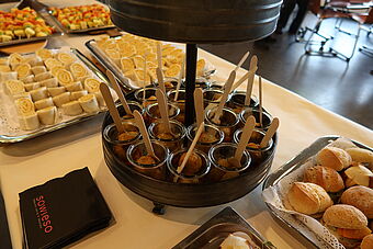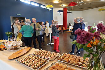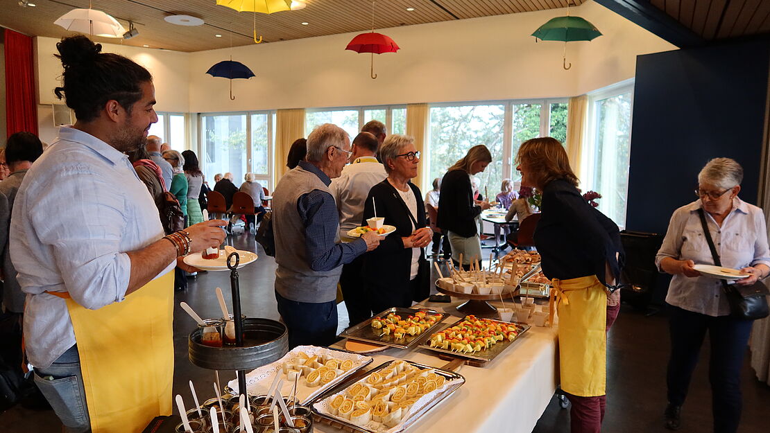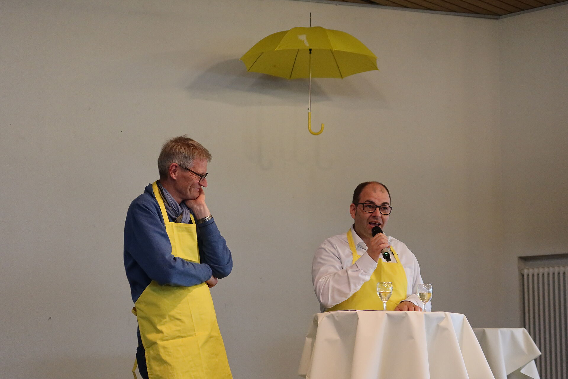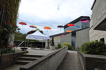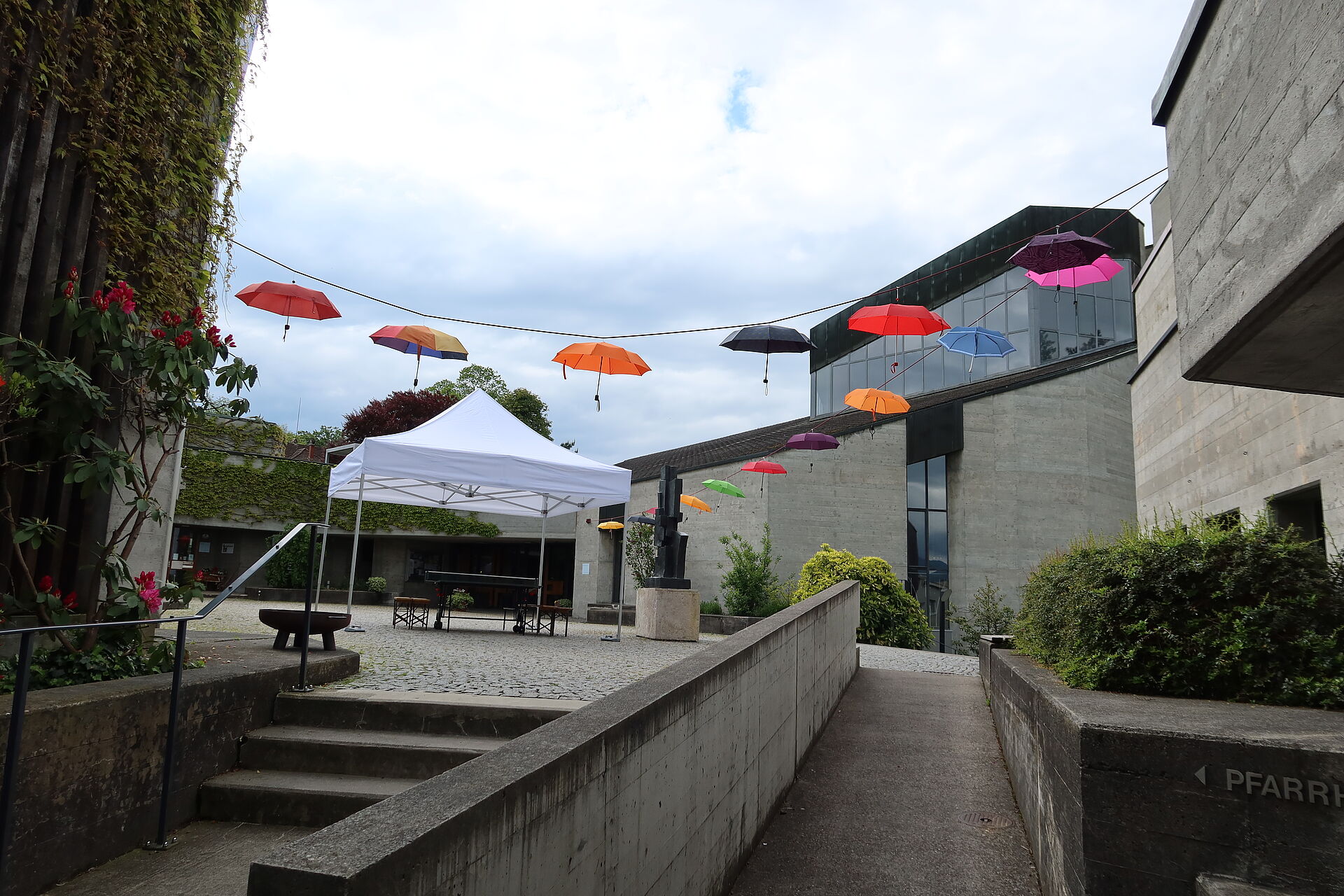Es war und ist dem Pfarreiteam ein grosses Anliegen, den zahlreichen Freiwilligen unserer Pfarreien DANKE zu sagen, für die grosse Mithilfe durchs Jahr. Dies wurde am Fest mit bunten Schirmen, draussen und drinnen, bildlich dargestellt. Beim Apéro riche kamen interessante und schöne Begegnungen zustande, im Hintergrund spielte der Barpianist. Leider kam uns das kalte Wetter etwas in die Quere, der Hauptanlass war im Pfarreisaal und der Innenhof von St. Michael wurde vor allem von den Freiwilligen unter 25 genutzt.