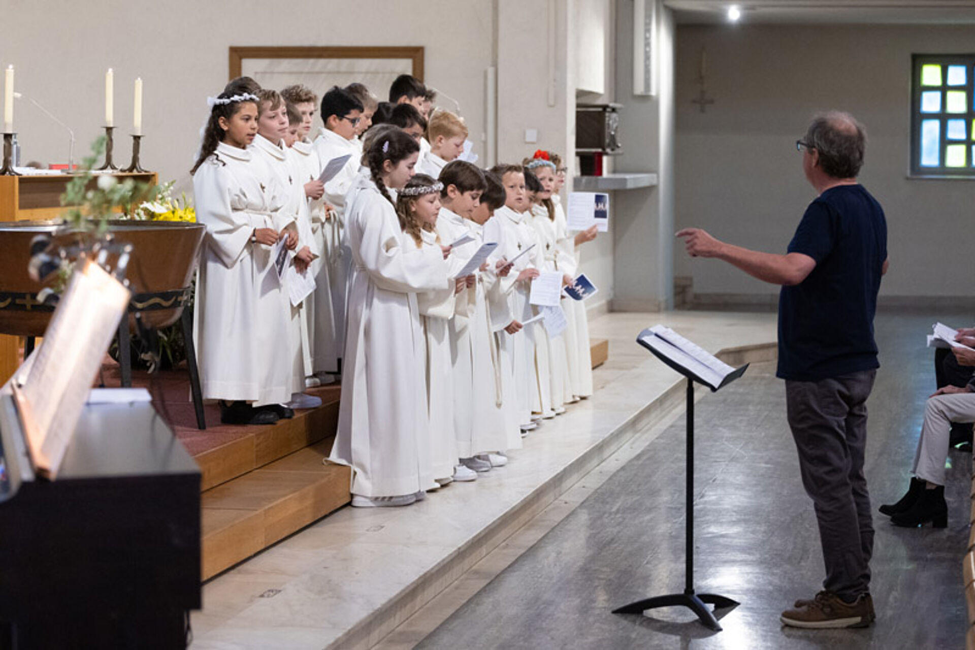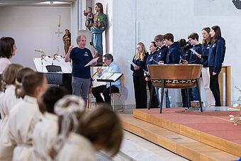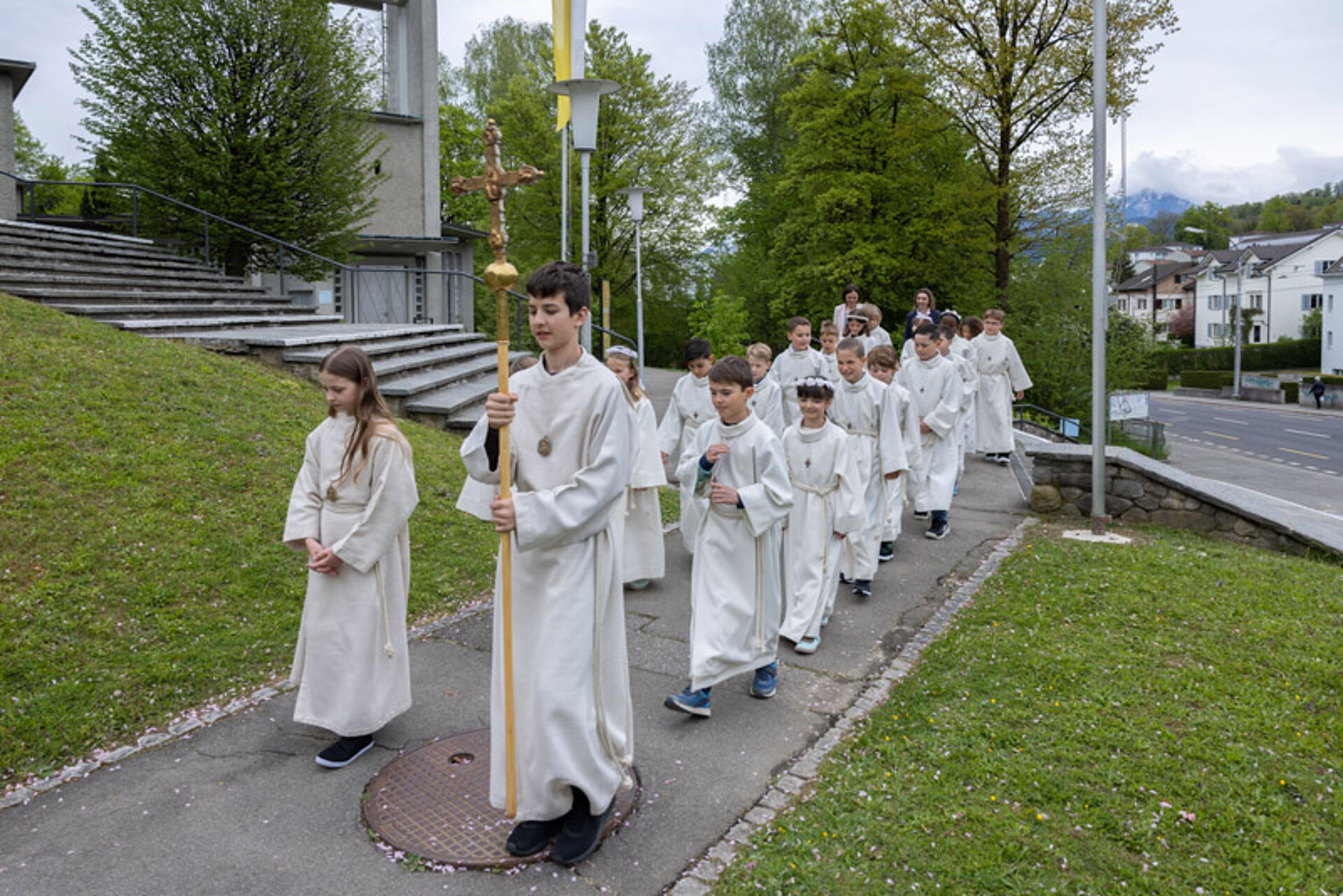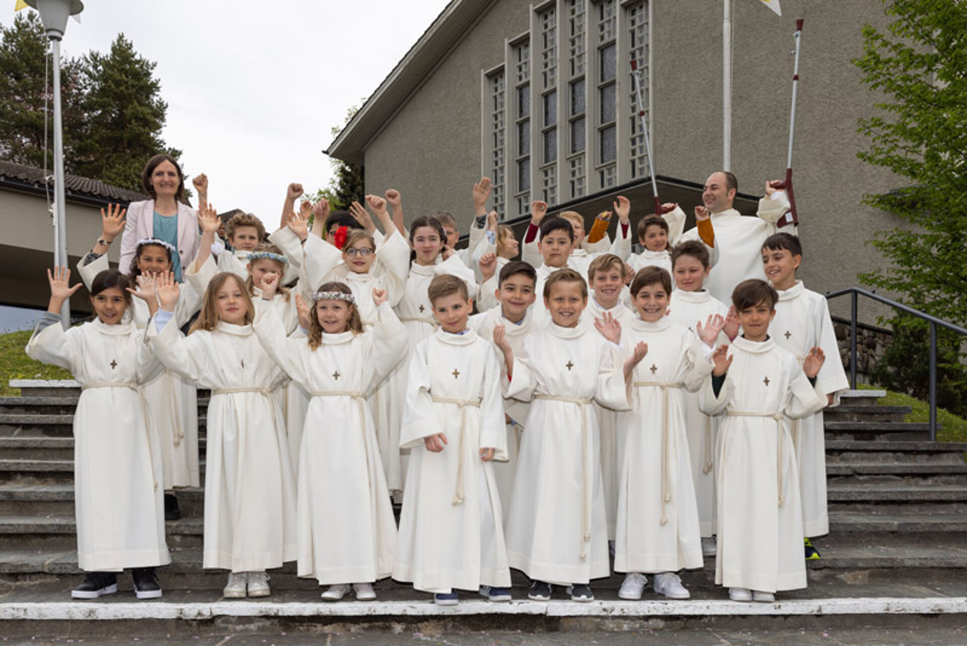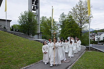 Musikalisch begleitet wurde der Festgottesdienst von Mitgliedern des Kinder- und Jugendchores unter der Leitung von Thomas Walpen. Nach dem Gottesdienst verkauften die Erstkommunion-Kinder vor der Kirche selbstgebastelte Karten. Mit dem Erlös von 1009.20 Franken wollen sie Notleidende des Ukraine-Krieges unterstützen und so einen ganz konkreten Beitrag leisten für jene Mitmenschen, die unsere Hilfe im Moment besonders brauchen.