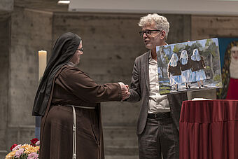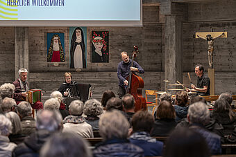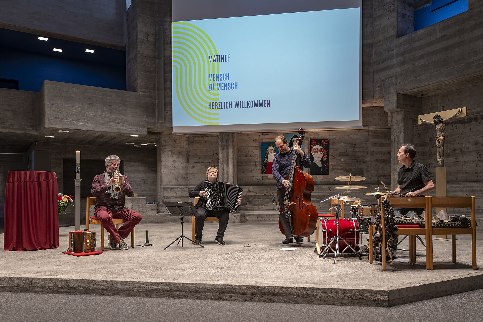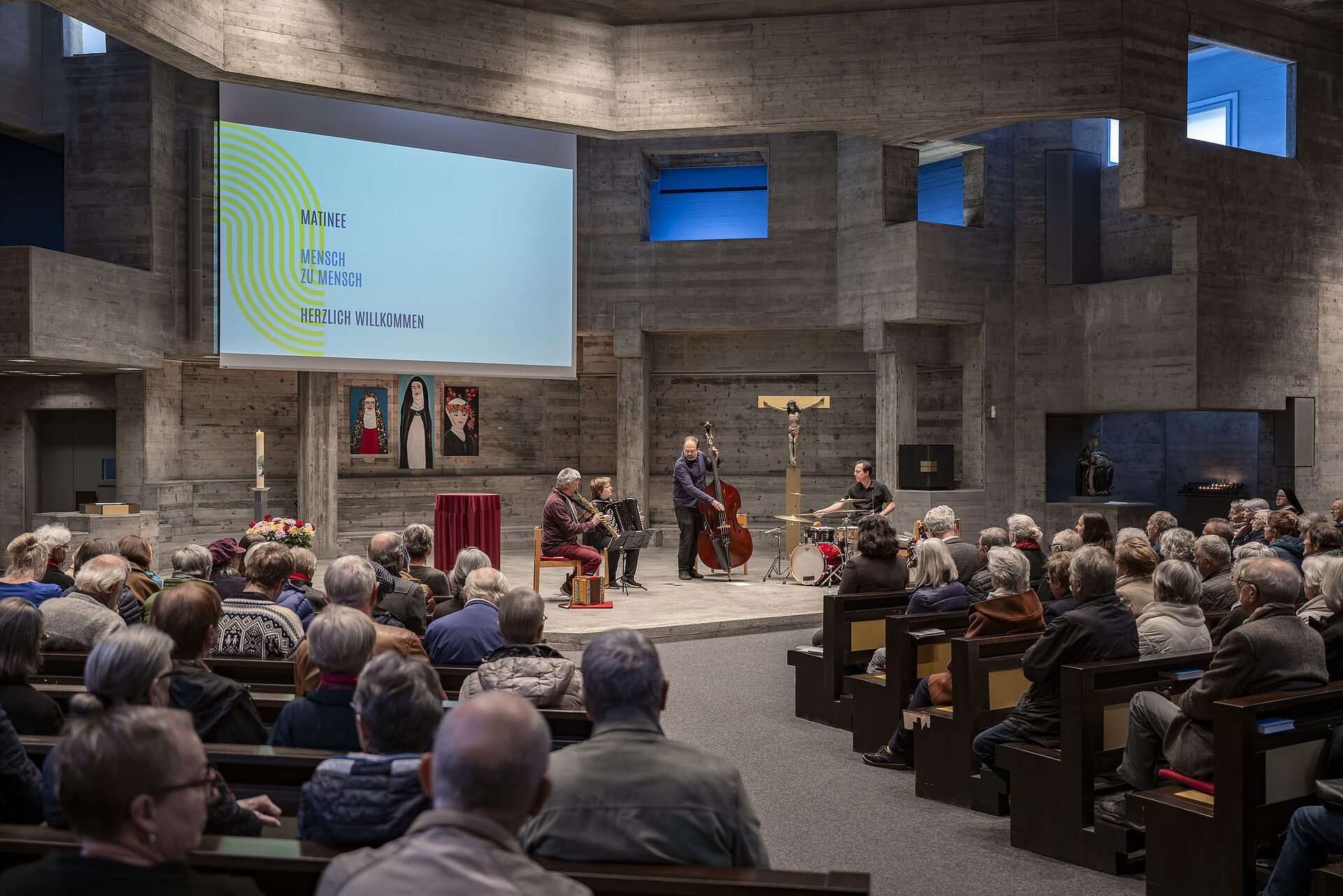 Einen überaus vielfältigen und inspirierenden Sonntag Morgen erlebten die 250 Teilnehmenden an der Matinée «Mensch zu Mensch». Elf Kunst- und Kreativschaffende aus dem Quartier stellten ihre Werke aus. Der Kurator Chrigl Hess Caduff führte in die Ausstellung ein. Das Albin Brun Quartett brillierte mit einheimischen und afrikanischen Melodien und Rhythmen. Der Verein Pro Maua berichtete vom Solarprojekt in Tansania und bot ein köstliches Mittagessen an. Kreativität und karitatives Engagement haben viel gemeinsam. Eine wunderbare Stimmung der herzlichen Begegnung und Gemeinschaft herrschte im St. Johannes.