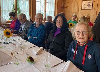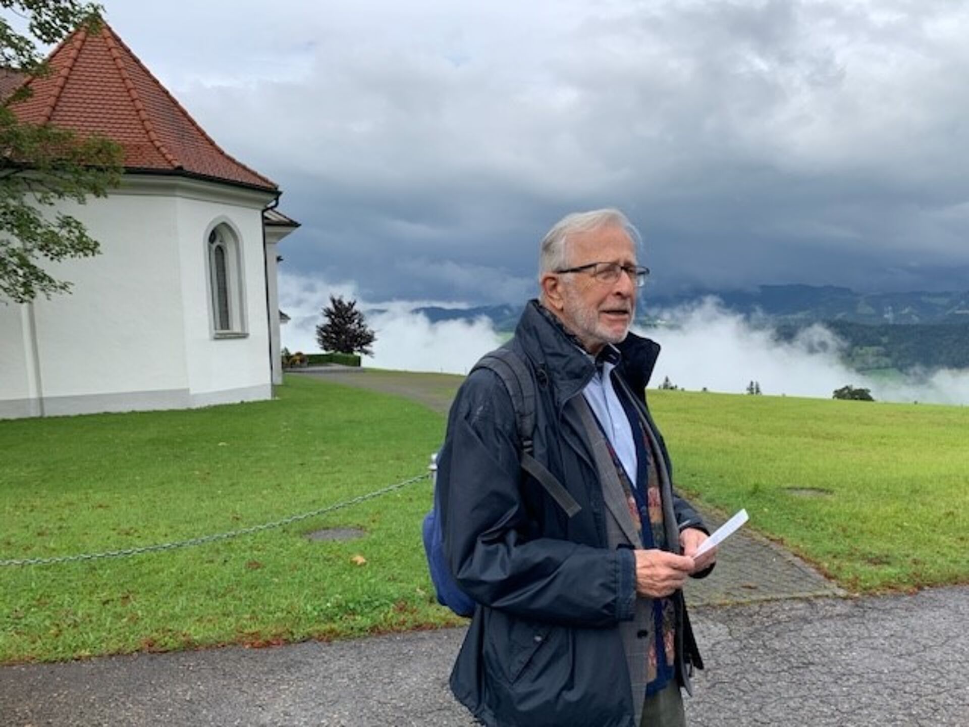 Nach der lehrreichen Führung knurrte uns der Magen, und so strebten wir dem Kurhaus Heiligkreuz zu, wo wir bestens verköstigt wurden. An Unterhaltung fehlte es uns auch nicht: Passend zur Umgebung trug uns unser Chormitglied Martha, eine echte Entlebucherin, ein Gedicht über das schönste und grösste Buch der Welt, das Entlebuch, vor. Natürlich durften ein paar Entlebucher Witze nicht fehlen, ebenso nicht ein paar Lieder, begleitet von Gloria auf ihrer Gitarre. Als wir uns nach dem Essen auf einen Spaziergang begaben, waren wir alle froh, dass das Wetter etwas freundlicher wurde, so dass wir auch die wunderbare Aussicht geniessen konnten. Dankbar für den schönen und abwechslungsreichen Tag traten wir bald darauf gutgelaunt die Heimreise an.