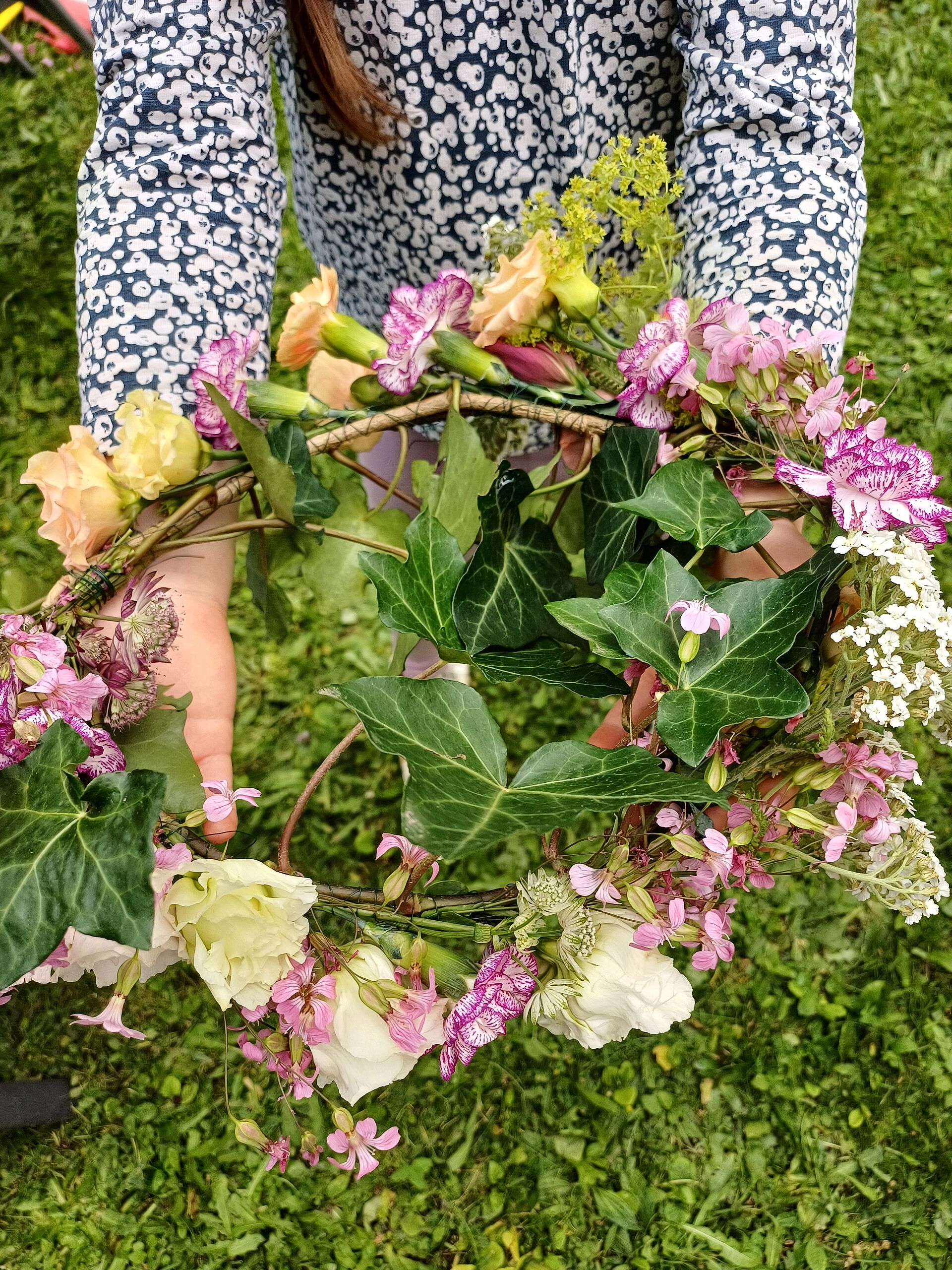 Die selbst gestalteten Blumenkränzli erinnerten an das schwedische Mitsommerfest, welches im Gegensatz zum Johannes- Fest keinen religiösen Bezug hat.